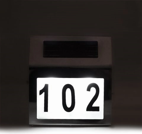 Silná LED rovnomerne presvieti panel s číslom, takže je adresa ľahko čitateľná aj za úplnej tmy.