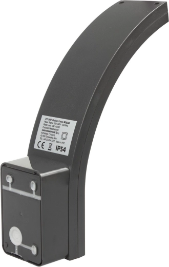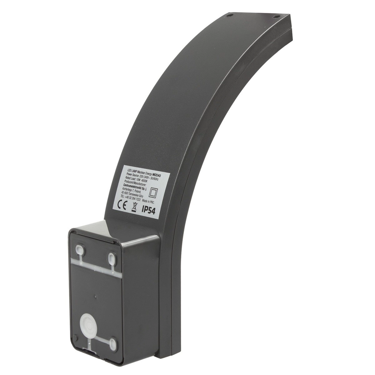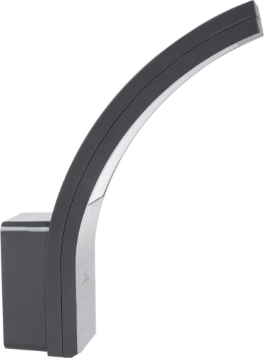 Moderné nástenné LED svietidlo s elegantne prehnutým telom a veľkým difúzorom zabezpečuje príjemné a neoslňujúce svetlo pre bezpečný pohyb okolo domu. Skvele sa hodí na fasády, terasy, prístrešky, vjazdy aj vstupné priestory.