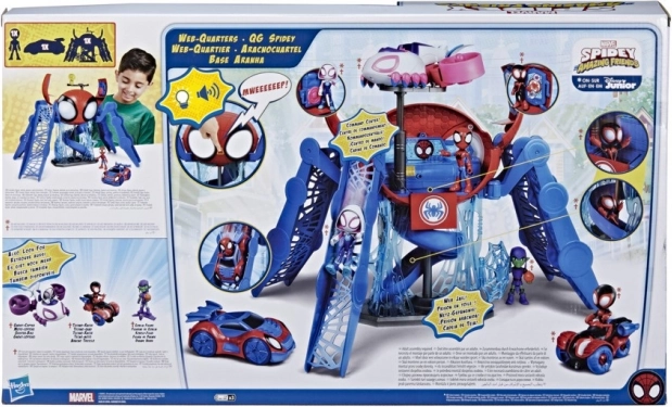 Zažite poriadne pavúčie dobrodružstvo s touto hracou súpravou Pavučia základňa, ktorá je inšpirovaná seriálom Spider-Man a jeho úžasní priatelia na Disney Junior! Túto neuveriteľnú Pavučiu základňu uvidíte v každej epizóde seriálu. Vyzerá ako obrovský pavúk, má štyri obrie nohy, ktoré môžete jednoducho ohýbať, a vytvárať tak plošiny, na ktorých budú vozidlá parádne brzdiť. Pavučia základňa, ktorá má svetelné a zvukové funkcie, je kompatibilná s ďalšími vozidlami zo seriálu Spider-Man a jeho úžasní priatelia. Každá postava si tu nájde svoje jedinečné miesto, napríklad pavučiu laboratóriu, detektívnu pracovňu alebo napríklad väzenie. Pre Spider-Mana a jeho priateľov tu skrátka bude veľa miesta na riešenie spoločných misií! Hracia súprava obsahuje figúrku Spider-Mana s veľkosťou 10 cm a pavučí motocykel.