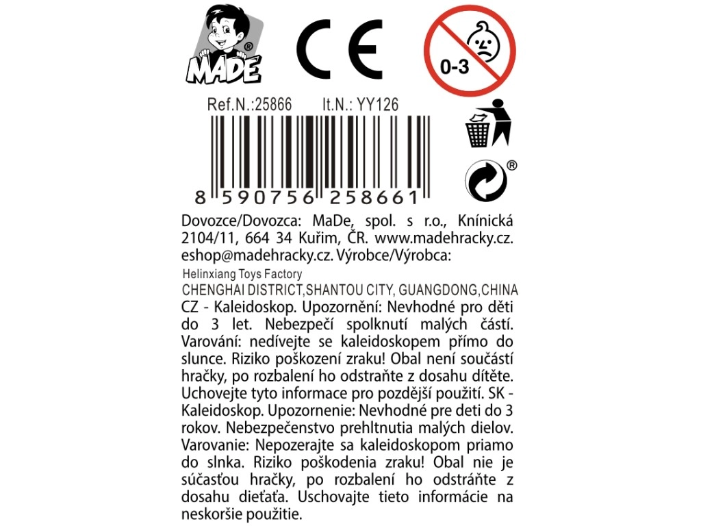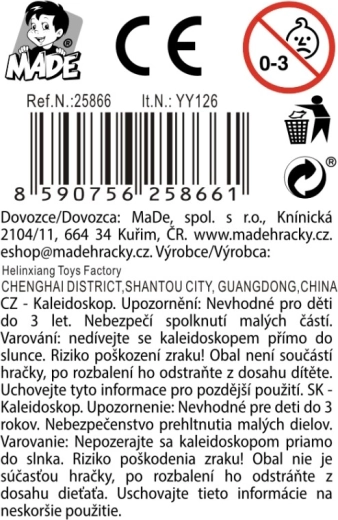 Roztočte fantáziu s klasickou hračkou, ktorá nikdy neomrzí. Tento kaleidoskop vytvára fascinujúce, neustále sa meniace obrazce, ktoré podnecujú zvedavosť, kreativitu a vizuálne vnímanie. Vďaka pestrým motívom v 5 variantoch si deti môžu vybrať svoj obľúbený štýl.