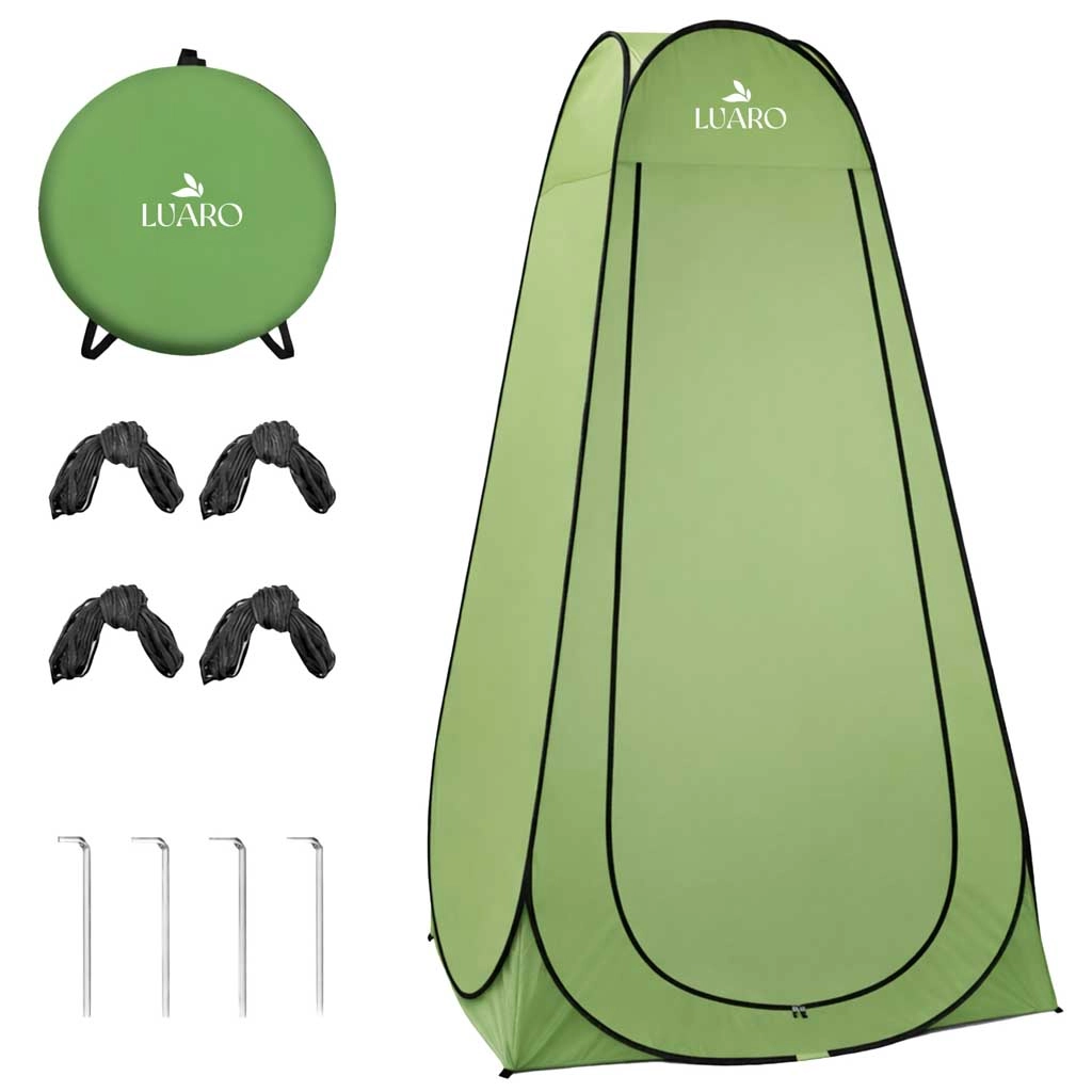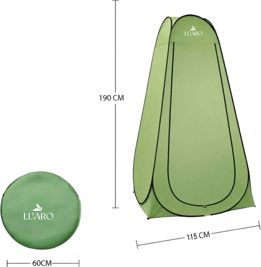 Praktický a mobilný stan LUARO typu pop-up poskytne okamžitú súkromnú kabínu na prezliekanie, sprchovanie alebo toaletu na pláži, v kempe aj na festivale. Vďaka samorozkladacej konštrukcii ho postavíte počas pár sekúnd, je ľahký, vetruodolný a ľahko prenosný v priloženom obale.