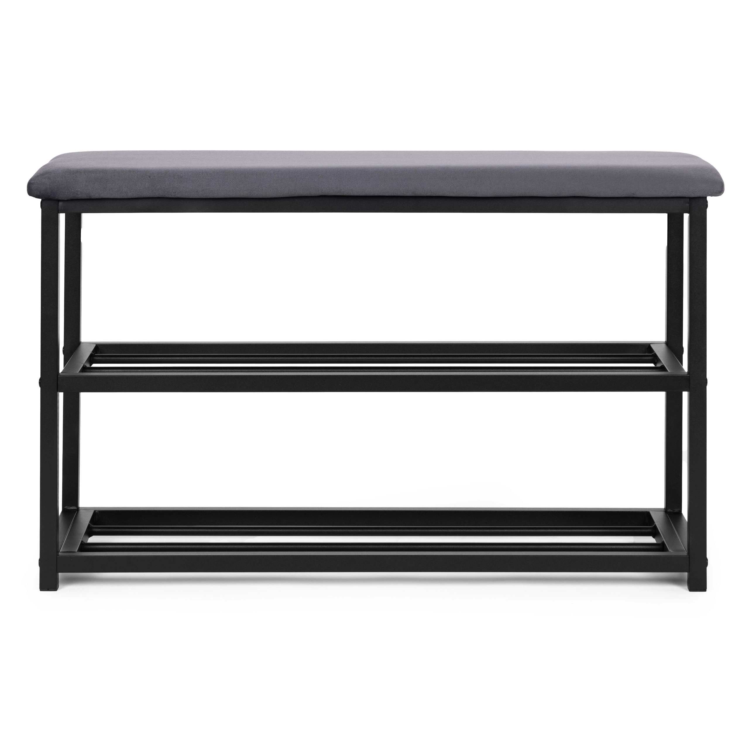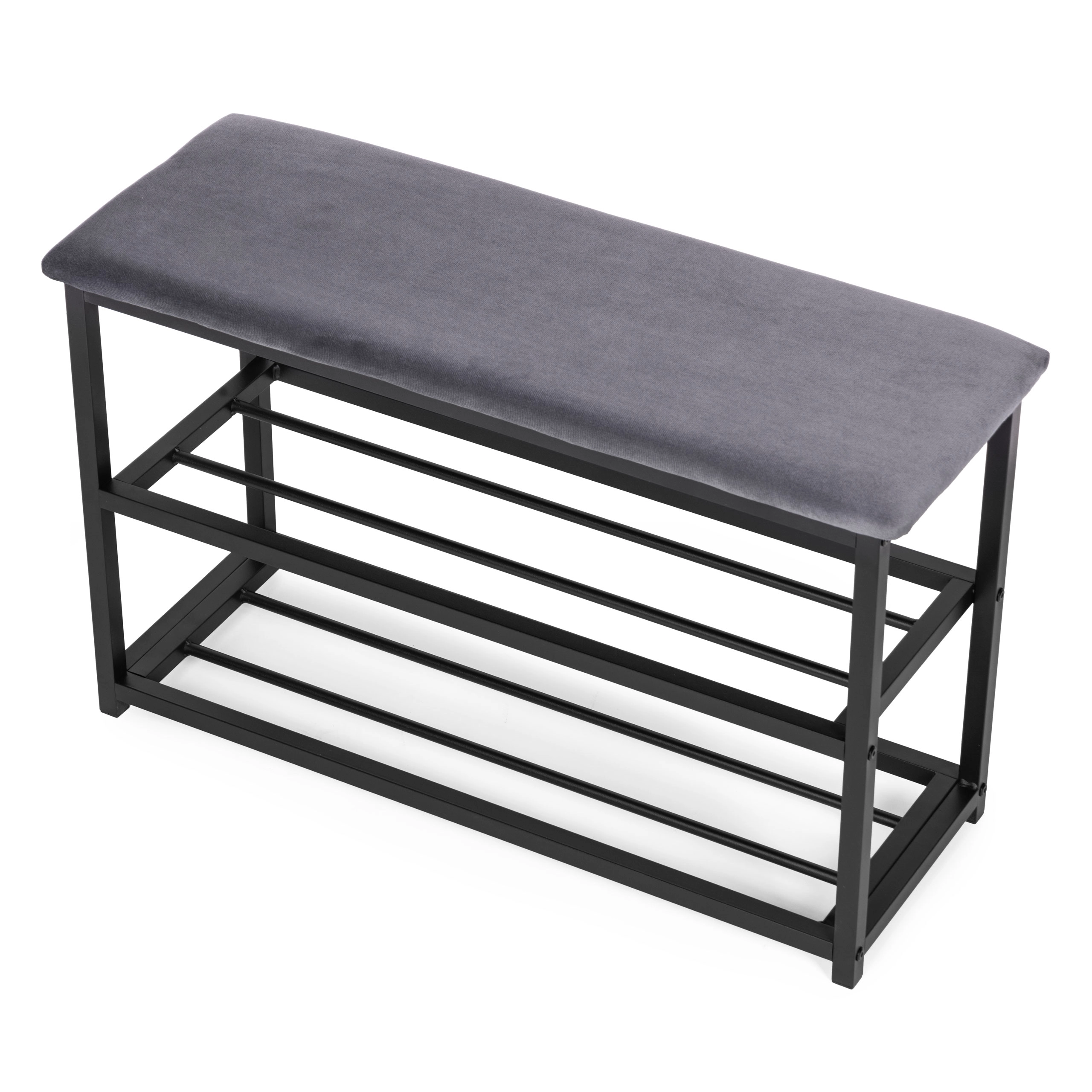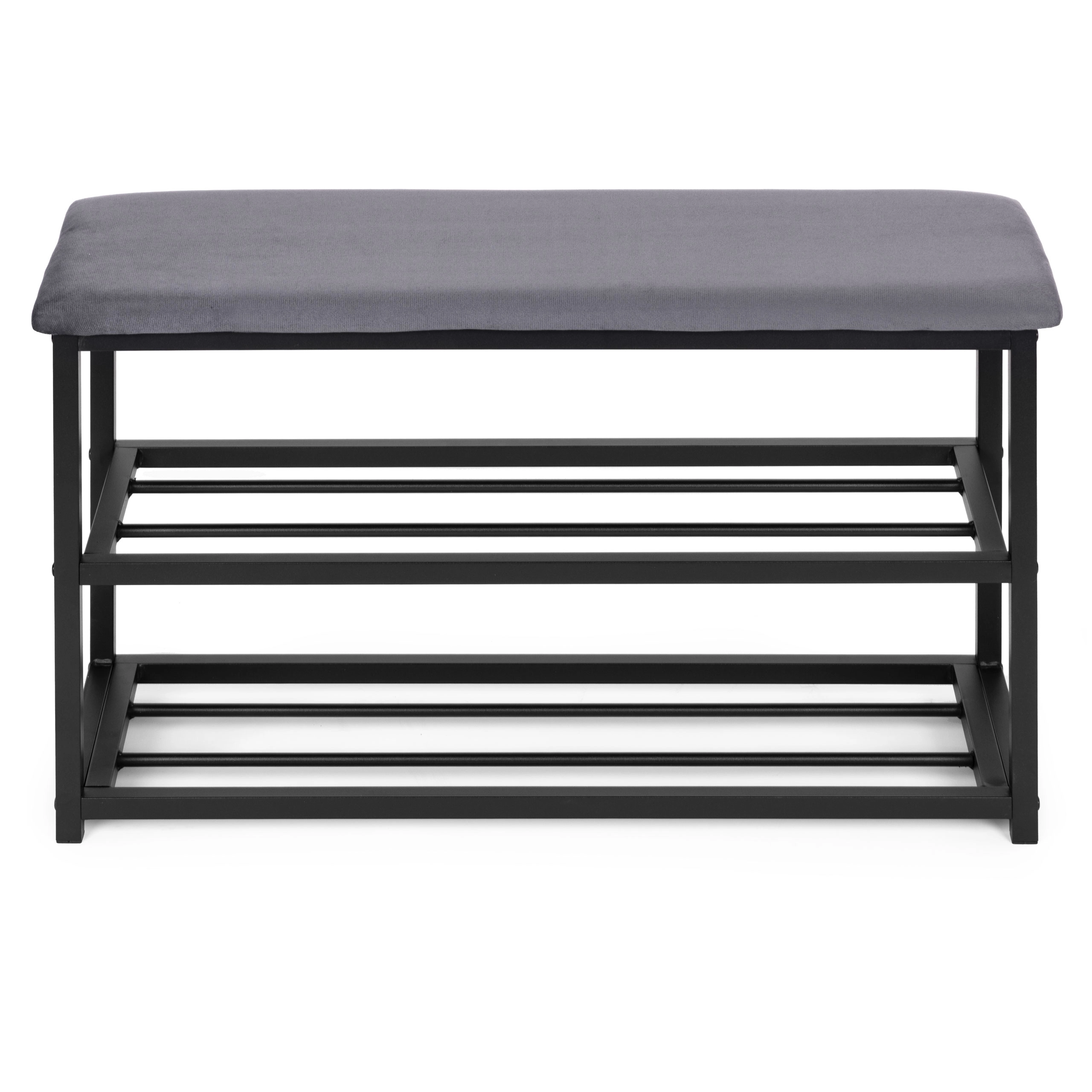 Štýlová lavica na topánky ModernHome kombinuje úložný priestor a pohodlné sedenie v jednom. Vďaka dvom policám pojme až 8 párov obuvi a jej mäkký zamatový sedák uľahčí obúvanie. Práškom lakovaný oceľový rám zaisťuje stabilitu a dlhú životnosť, zatiaľ čo otvorené police poskytujú prehľadnosť a vetranie obuvi. Ideálna do predsiene, šatne aj šatníkovej skrine.