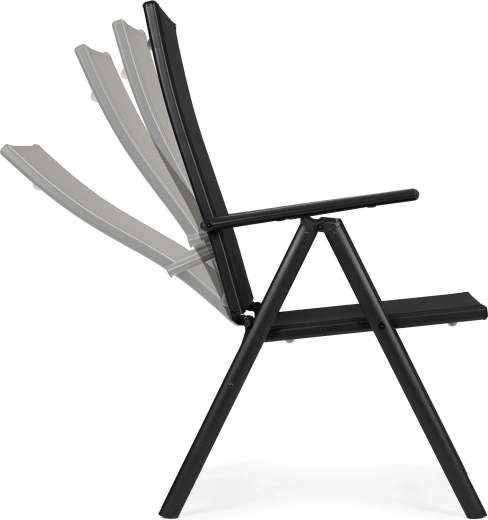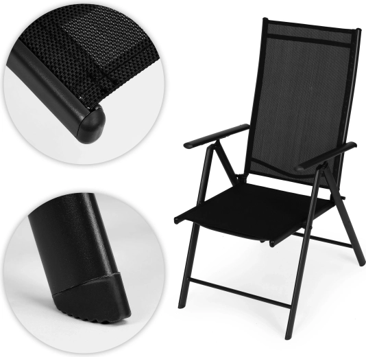Vďaka skladacej konštrukcii kreslo šetrí miesto a je pripravené na kempovanie, piknik aj dovolenku. Ochranné pätky nôh minimalizujú riziko poškriabania podlahy aj terasy. Moderné čierne prevedenie sa hodí k väčšine záhradných setov a ľahko sa udržiava.