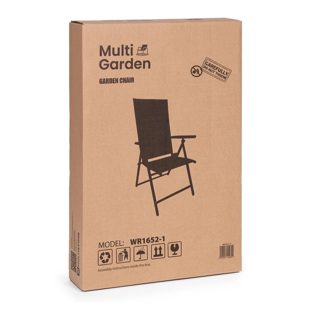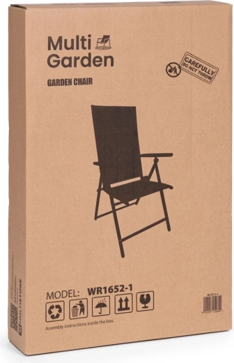 Štýlové a praktické kreslo MULTIGARDEN je ideálne na záhradu, terasu aj balkón. Robustný rám z práškom lakovanej ocele zaisťuje stabilitu, zatiaľ čo textilénová sieťovina sa prispôsobí telu, dobre vetrá a rýchlo schne – skvelé aj na horúce dni. 7 pozícií operadla jednoducho nastavíte zdvihnutím lakťových opierok, takže v priebehu chvíľky prejdete zo sedenia pri stole do relaxačnej polohy.