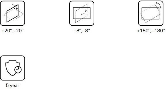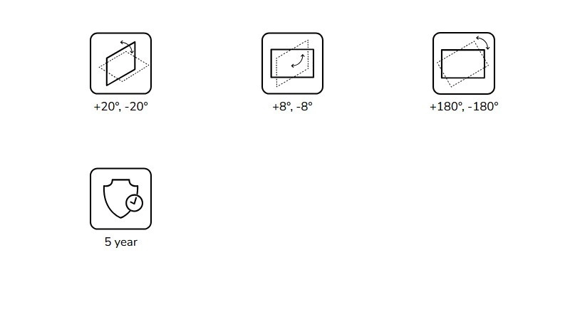 Pre jednoduchú inštaláciu a každodenné používanie ponúka držiak kompletnú sadu nastavení: náklon +20°/−20° na korekciu výšky obrazu, plnú rotáciu 360° pre ideálne nasmerovanie a jemné dorovnanie horizontu v rozsahu +8°/−8°, čo zaručí rovný a perfektne vycentrovaný obraz.