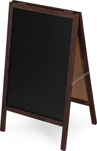 Dve písacie strany zvyšujú dosah odkazu – menu, akcie aj krátke odkazy uvidia zákazníci z oboch smerov. Hladký povrch sa ľahko popisuje kriedou a rýchlo sa maže.