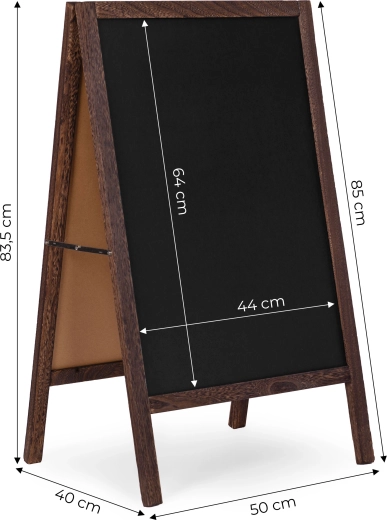 Praktická obojstranná áčková tabuľa ModernHome pre reštaurácie, kaviarne a obchody ponúka veľkú plochu na odkaz a jednoduchú údržbu. Vďaka stabilnej drevenej konštrukcii, obojstrannej kriedovej ploche 44 × 64 cm a ľahkému prenášaniu je ideálna na prezentáciu menu, akcií a oznámení. Text jednoducho utríte hubkou či handričkou a rýchlo aktualizujete ponuku.