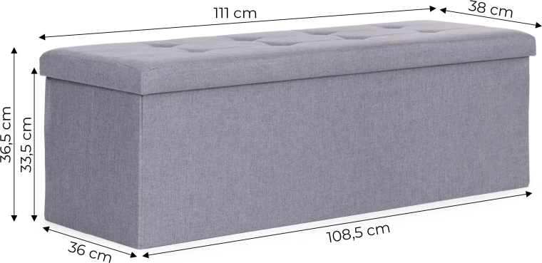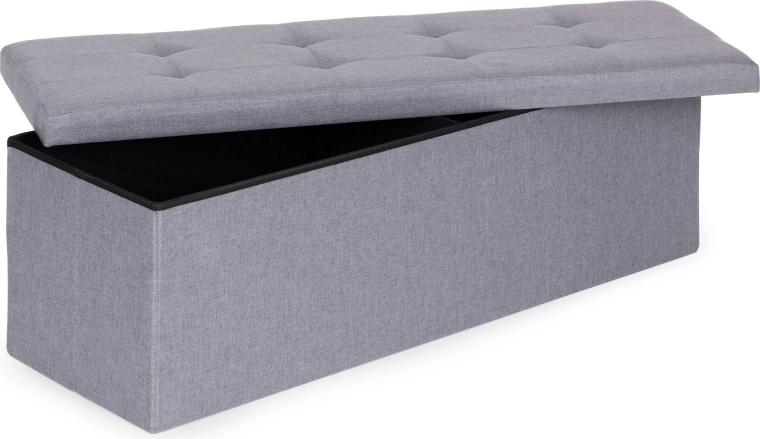 Odolná MDF konštrukcia zaisťuje stabilitu, polstrované veko poskytuje pohodlné sedenie a skladací systém umožňuje rýchle zloženie aj úsporné uloženie, keď lavicu práve nepotrebujete. Vnútorná vyberateľná prepážka pomáha triediť obsah alebo vytvoriť jeden veľký priestor.