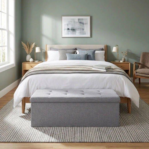 Polstrované veko zaisťuje pohodlné sedenie, zatiaľ čo vo vnútri nájdete veľkorysý priestor na deky, vankúše či topánky – ideálne na udržanie poriadku v každej miestnosti.