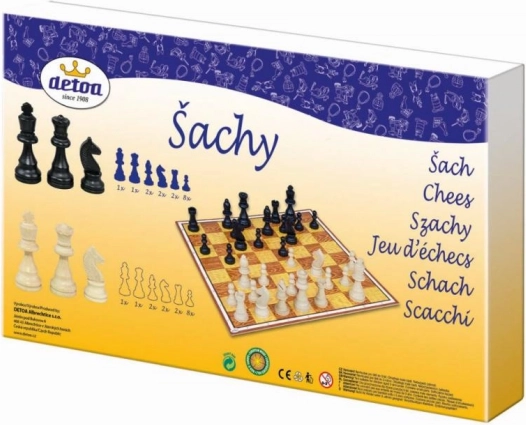 Klasické šachy od značky Detoa s 32 drevenými figúrkami a pevným hracím poľom z tvrdého papiera. Ideálne na rozvoj logického a taktického myslenia, pre zábavu celej rodiny a prvé zoznámenie detí so stratégiou. Bezpečný výrobok spĺňajúci normy EÚ, vhodný od 3 rokov.