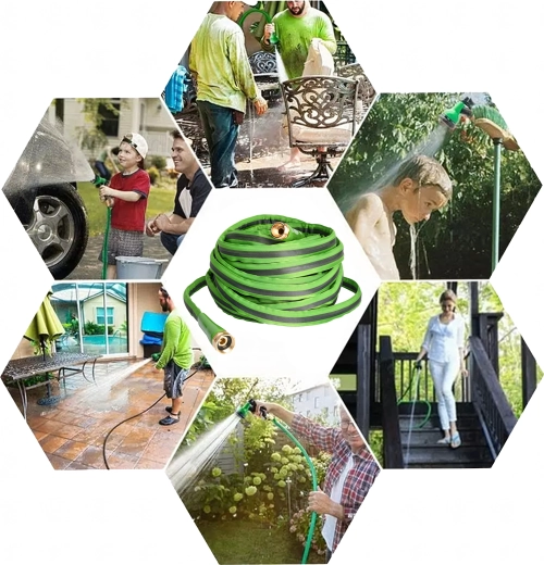 Vďaka zosilnenému plášťu a odolnosti voči krúteniu a zamotaniu sa hadica ľahko používa aj skladuje. Je kompatibilná s bežnými postrekovačmi, pištoľovými nástavcami a záhradnými kohútikmi s prípojkou 1/2".