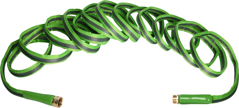 Spevnený plášť s textilnou výstuhou obmedzuje krútenie a zamotávanie, takže hadica zostáva prietočná a ľahko sa navíja aj skladuje.