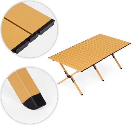 Užite si pohodlie kdekoľvek vonku – tento skladací stôl poskytne stabilnú plochu na jedlo, nápoje aj kempingové doplnky. Vďaka robustnému rámu z uhlíkovej ocele a rolovacej doske z lamiel ponúka výbornú stabilitu, jednoduchú údržbu a rýchle zostavenie.