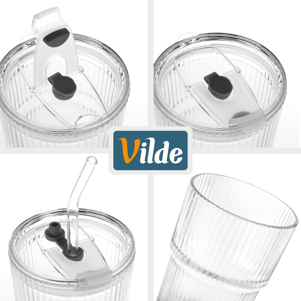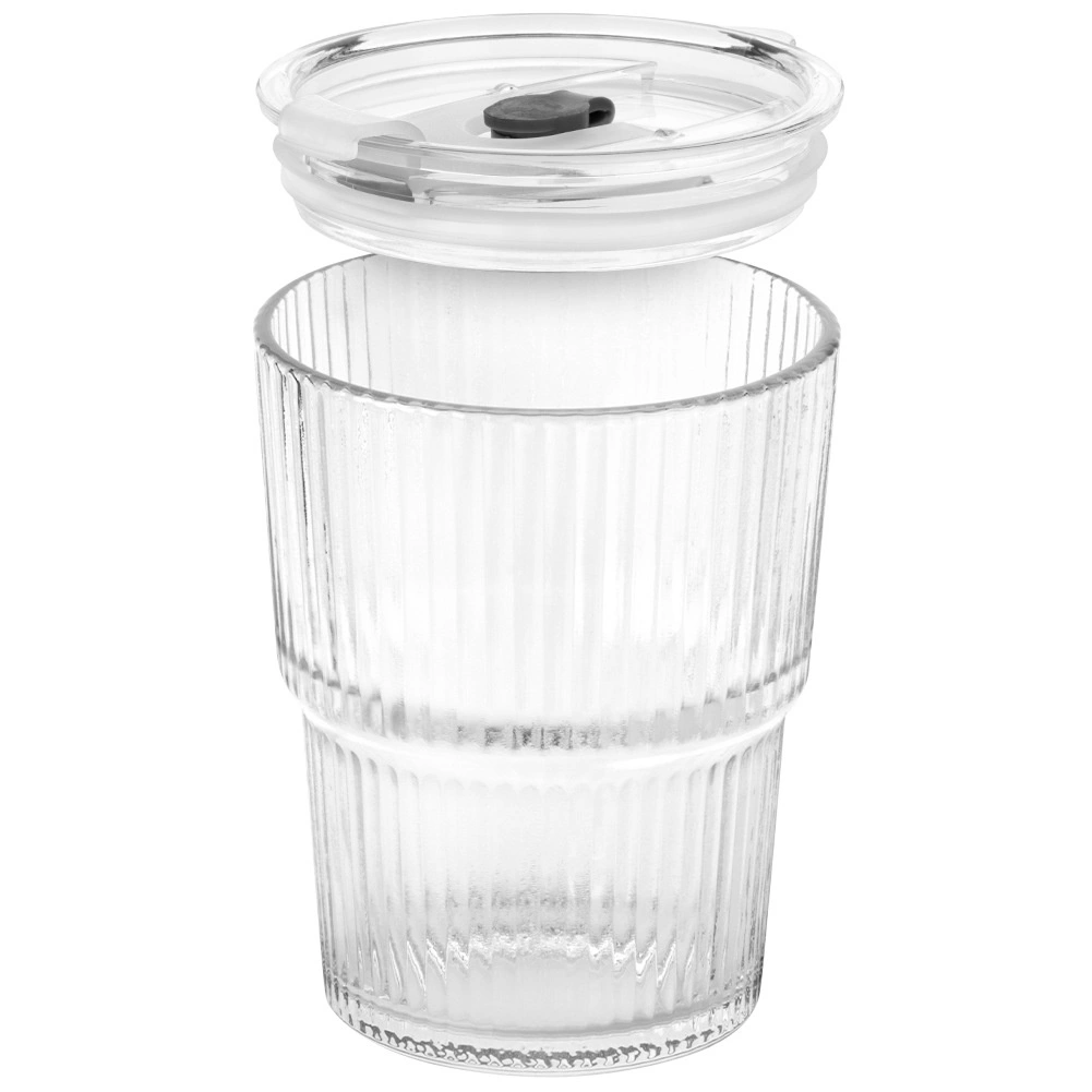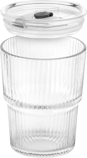 Vychutnajte si obľúbené nápoje štýlovo a bez rozliatia. Tumbler poháre z číreho, ryhovaného skla dopĺňa transparentné viečko s tesnením a otvor na slamku, ktorý možno uzavrieť posuvnou krytkou. Vďaka praktickému tvaru sú poháre pohodlné do ruky a skvele sa hodia na studené aj teplé nápoje.