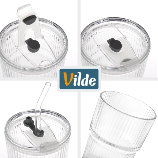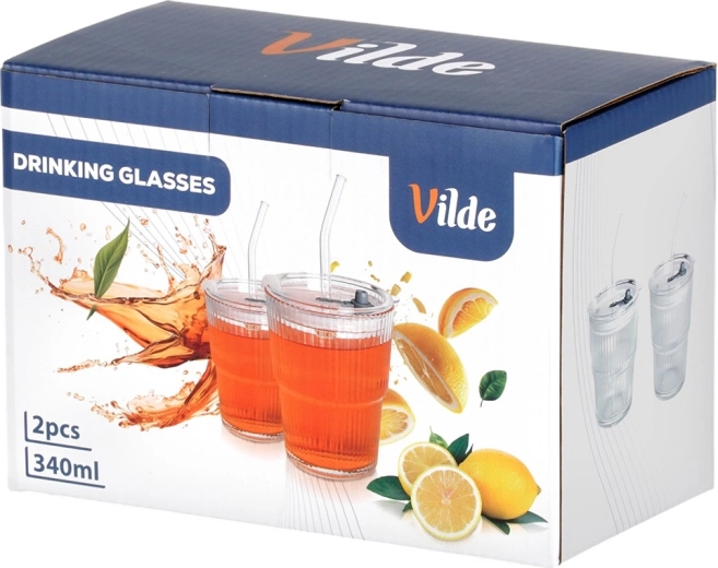 Každý pohár má objem 340 ml a kompaktné rozmery na každodenné použitie. Viečko pomáha obmedziť rozliatie a chráni nápoj pred prachom, slamka umožní pohodlné popíjanie na cestách aj pri posedení vonku. Originálny produkt značky Vilde, vyrobený v súlade s európskymi štandardmi.