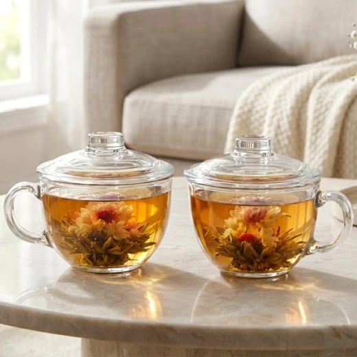 Elegantné sklenené hrnčeky s viečkom s objemom 520 ml sú ideálne na servírovanie čaju, bylinkových nálevov, kávy aj studených nápojov. Odolné voči teplu, s praktickým viečkom na udržanie teploty a s pohodlným uchom na bezpečné uchopenie. Vhodné do umývačky riadu.