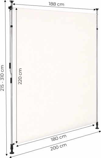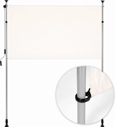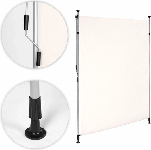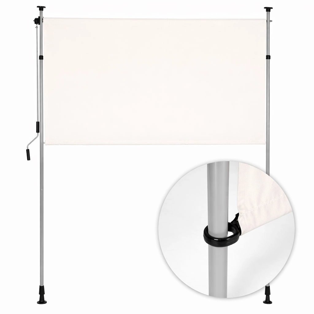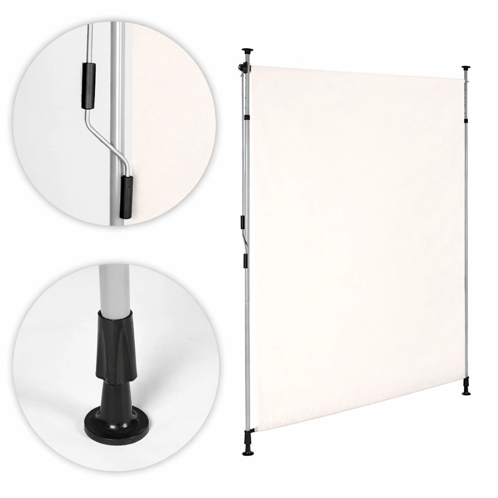 Robustný oceľový rám s práškovou úpravou odolá poveternostným vplyvom, zatiaľ čo kvalitná polyesterová látka 180 g/m² s hydrofóbnou úpravou chráni pred slnkom a ľahkým dažďom. UV odolnosť zaisťuje dlhú životnosť farby a materiálu a protišmykové koncovky držia roletu bezpečne medzi podlahou a stropom.