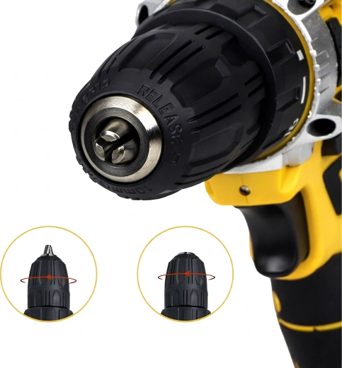 Sila na vŕtanie aj skrutkovanie s presným nastavením uťahovacieho momentu. Vhodné na drevo, plast aj kov, s rýchlou výmenou nástrojov vďaka bezkľúčovému skľučovadlu.