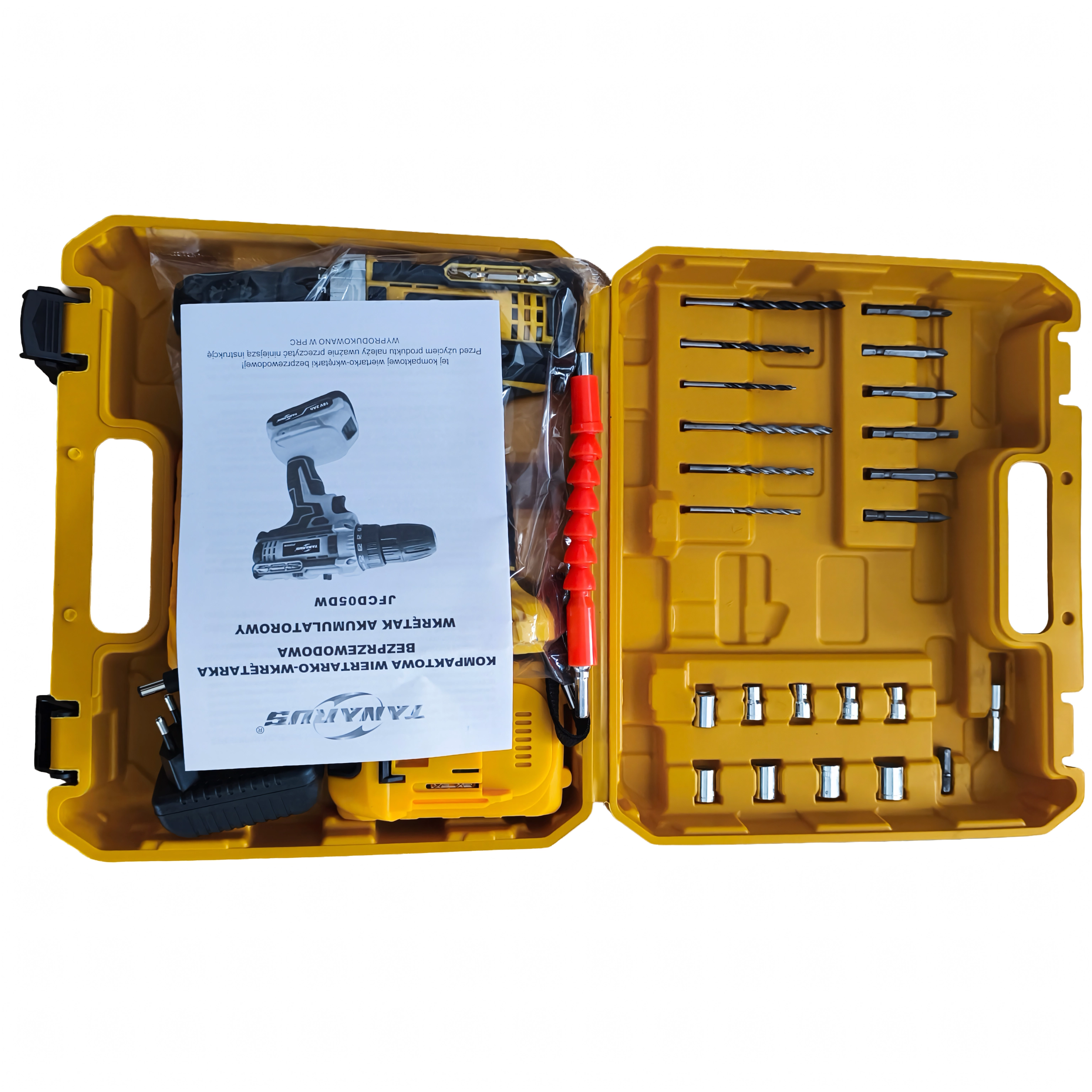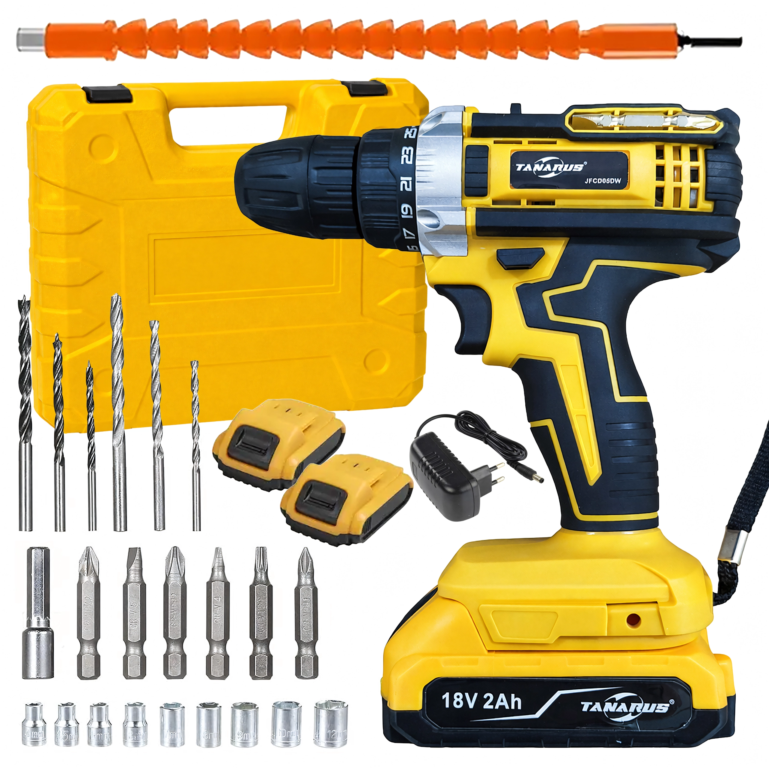 Súčasťou balenia je odolný transportný kufor a široká škála príslušenstva – vrtáky, bity, hlavice a flexibilný predlžovací nadstavec na prácu v stiesnených priestoroch. Dve batérie umožňujú plynulé striedanie a menej prestávok. Ergonomická rukoväť s protišmykovým povrchom a nízka hmotnosť prinášajú komfort pri dlhšej práci.