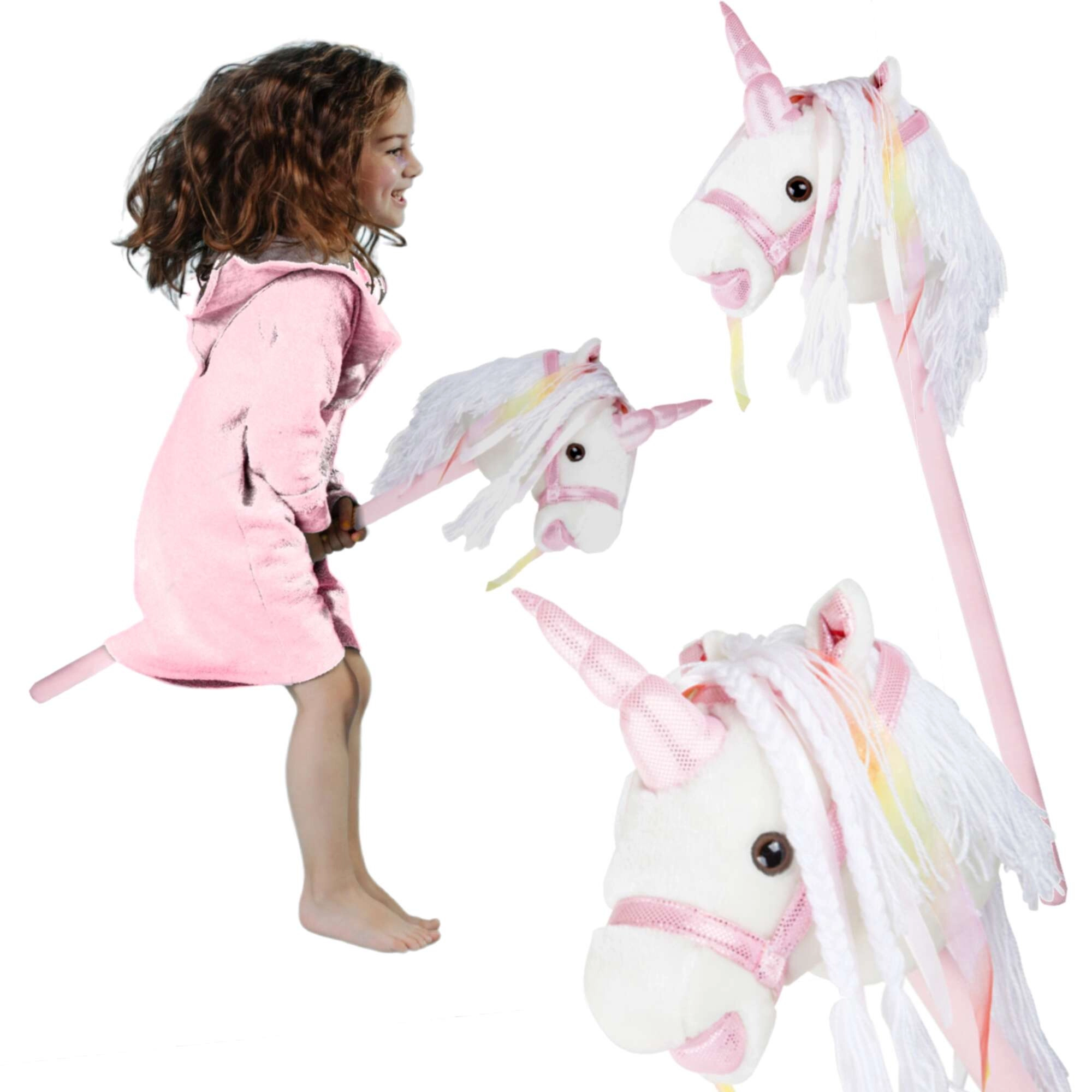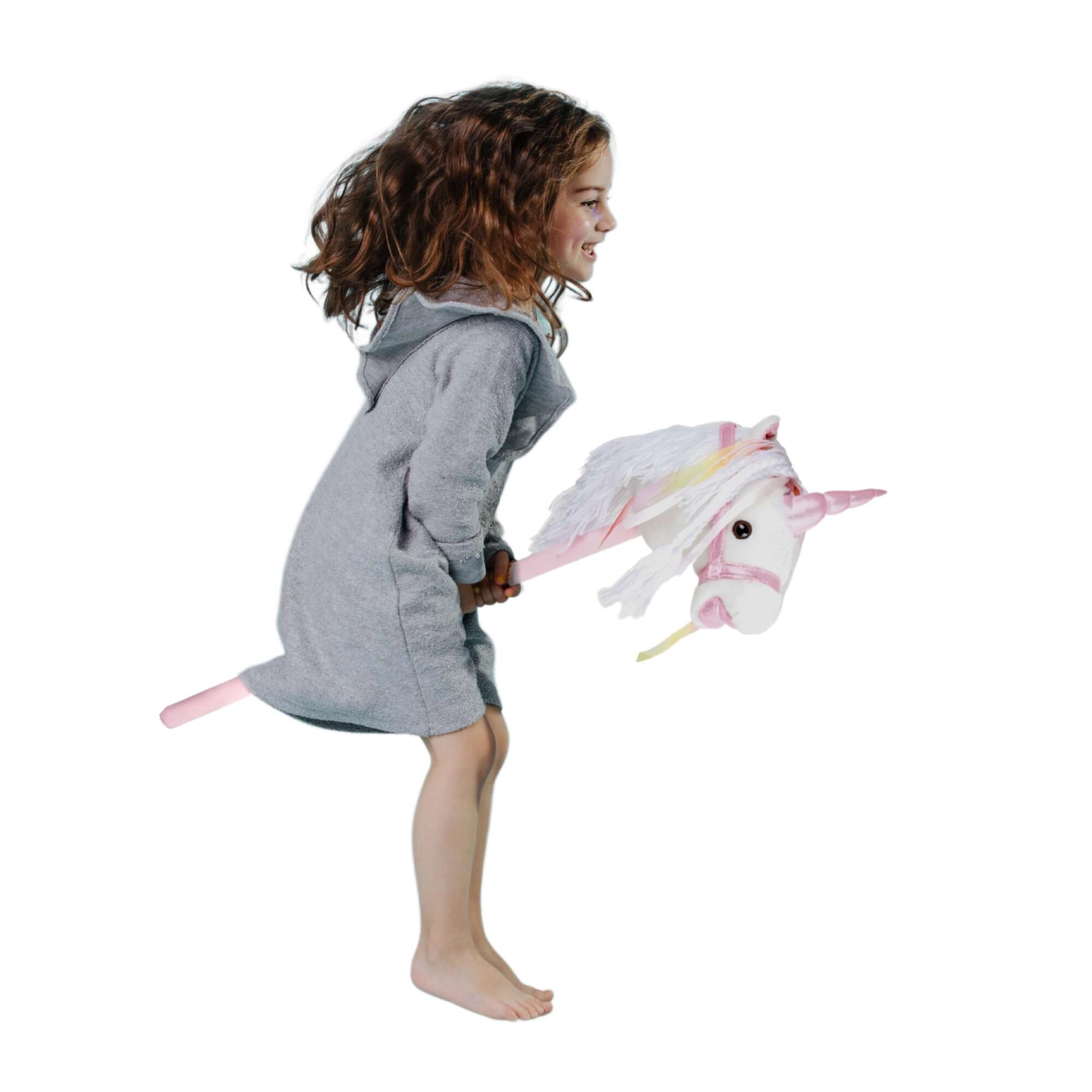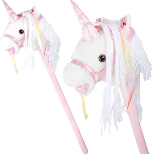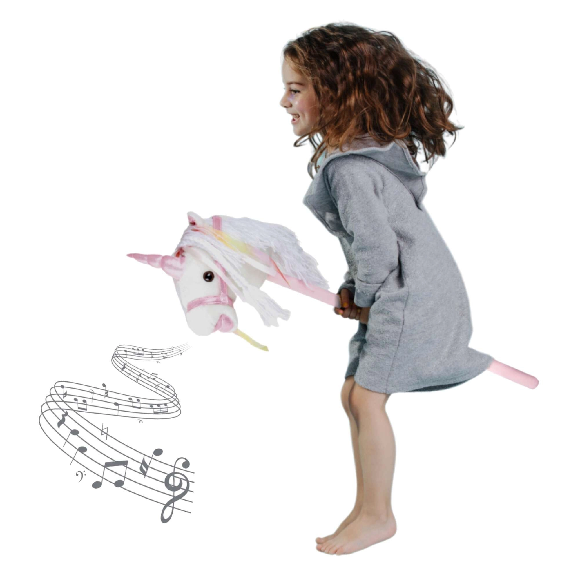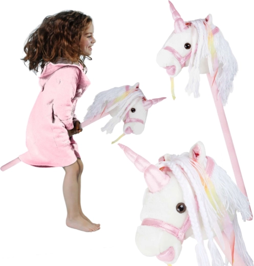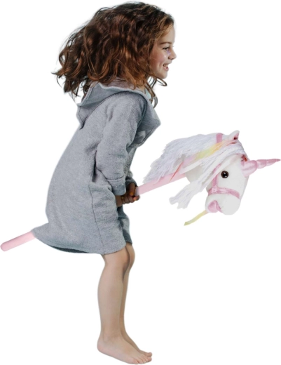 Tento jednorožec na tyči podporuje pohyb, fantáziu a role-play. Jemný plyš je príjemný na dotyk, ozdobná hriva a stužky dodajú každej jazde čarovnú atmosféru. Po stlačení tlačidla v uchu sa ozvú realistické zvuky klusu a erdžania, ktoré deťom ešte viac sprítomnia hru na jazdenie.