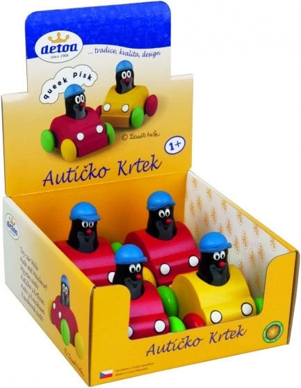 Zábavné hračkárske autíčko s postavičkou Krtka, ktoré pri jeho stlačení vydáva zvuk pískania. Ideálne pre deti od 1 roka, vyrobené z bezpečných materiálov.