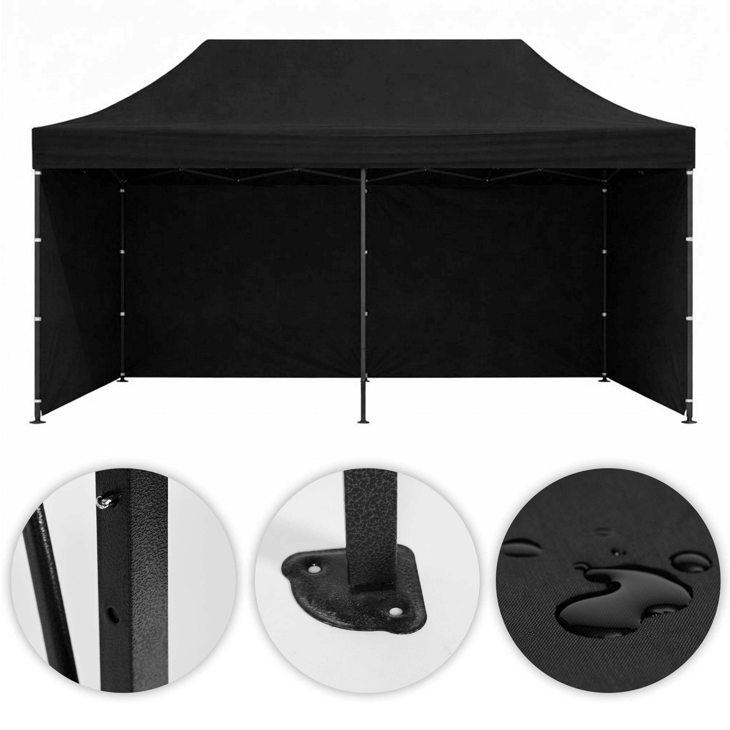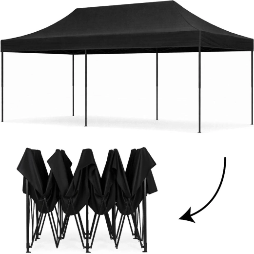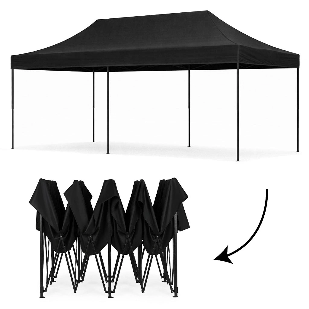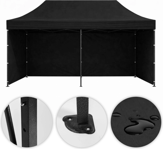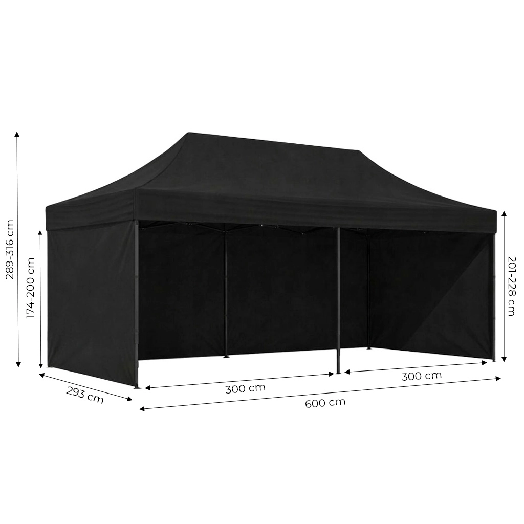 Robustný záhradný a eventový stan 3×6 m s automaticky rozkladacou oceľovou konštrukciou, 4 stupňami výškového nastavenia a odolným PE/PVC poťahom. Súčasťou sú 4 bočné steny na suchý zips, veľký otvorený vstup, kolíky a laná na ukotvenie a prepravná taška na ľahké prenášanie. Ideálny pre záhradu, trhy, veľtrhy aj oslavy.