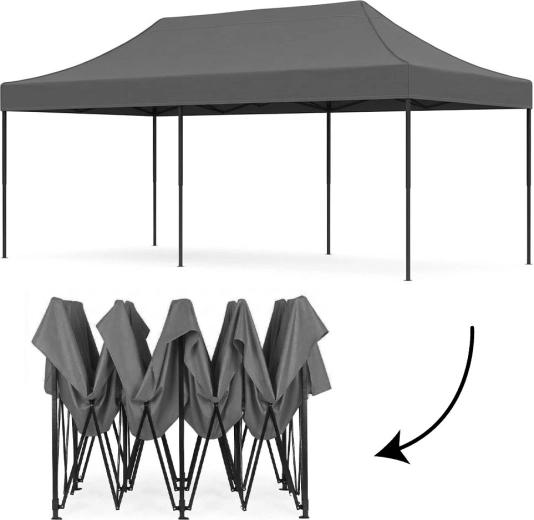 Hľadáte spoľahlivý prístrešok na záhradné oslavy, trhy alebo firemné akcie? Tento automatický párty stan 3×6 m v sivej farbe kombinuje rýchle rozloženie, pevnú oceľovú konštrukciu a odolné materiály na každodenné používanie vonku. Vďaka praktickým stenám na suchý zips si ľahko prispôsobíte mieru krytia aj prúdenie vzduchu.