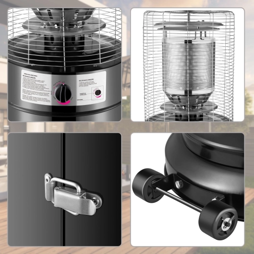 Tento terasový plynový ohrievač premení vašu záhradu či balkón na pohodlné útočisko aj v chladnejšom počasí. Moderný valcový dizajn s kovovým telom a krycím sklom elegantne zapadne do súkromných aj komerčných priestorov. Vďaka účinnému sálavému teplu poskytuje príjemnú tepelnú pohodu počas posedenia s rodinou i hosťami.