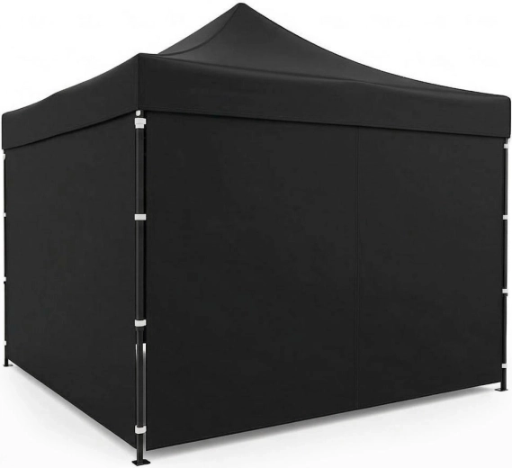 Súčasťou sú 4 bočnice so suchými zipsami na rýchle usporiadanie interiéru a široký vstup pre komfortný pohyb hostí aj vybavenia. Kolíky a napínacie laná zvýšia stabilitu na mäkkom podklade, transportná taška uľahčí prenášanie aj skladovanie. Ideálny pre rodinné oslavy, firemné promo, stánkový predaj, festivaly aj sezónne zázemie.