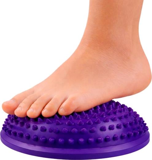 Fialová polguľa s priemerom 16 cm je univerzálna pomôcka na tréning rovnováhy, stabilizáciu stredu tela a senzomotorickú stimuláciu. Kužeľové výstupky jemne masírujú chodidlá, podporujú prekrevnenie a aktivujú svaly klenby. Skvele sa hodí pre deti aj dospelých – do domáceho prostredia, škôlok, škôl a fyzioterapeutických pracovísk.