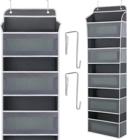 Nerezové háčiky s gumovými prvkami držia organizér pevne na mieste a zároveň chránia povrch dverí pred poškodením.