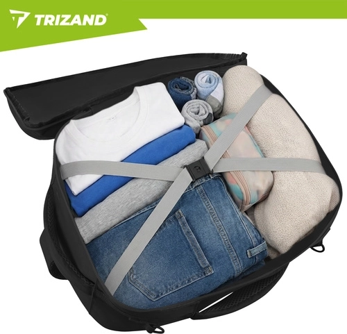 Ľahký a praktický cestovný batoh TRIZAND s objemom 20 l a rozmermi 40 × 25 × 20 cm je ideálny ako malá palubná batožina. Ponúka otváranie ako kufor, hydrofóbnu tkaninu Oxford 300D, skrytú protikrádežovú kapsu a režim 2v1 – batoh alebo taška cez rameno. Vďaka pásu na uchytenie na kufor, dvojitému zipsu a kompresným popruhom sa zbalíte rýchlo, prehľadne a pohodlne.
