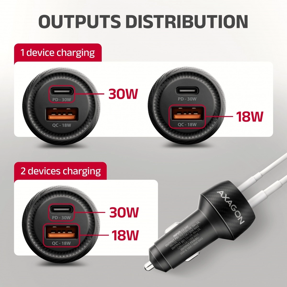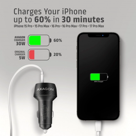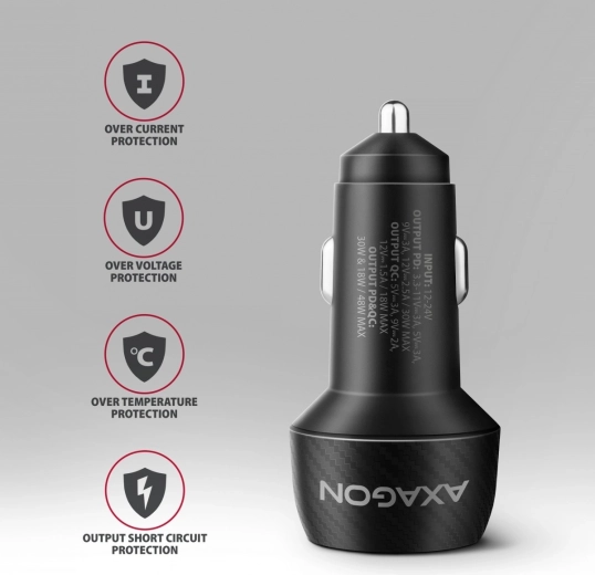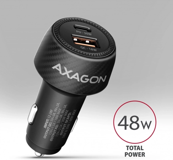 Užite si rýchle a spoľahlivé nabíjanie na cestách. Autonabíjačka AXAGON PWC-PQ48 kombinuje porty USB‑C PD 3.0 a USB‑A QC 4+ s celkovým výkonom 48 W, takže bez problémov nabije moderné smartfóny, tablety aj menšie notebooky ako MacBook Air. Elegantné kompaktné telo s nízkym profilom skvele padne do 12/24 V zásuvky a decentná LED dióda signalizuje prevádzku.