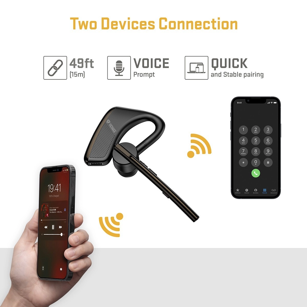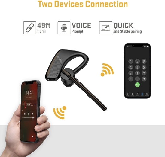 Headset možno spárovať s dvoma zariadeniami naraz, takže prijmete hovor z telefónu aj notebooku bez prepínania. Je to spoľahlivé riešenie pre bezpečné telefonovanie pri šoférovaní aj všade tam, kde potrebujete mať voľné ruky.