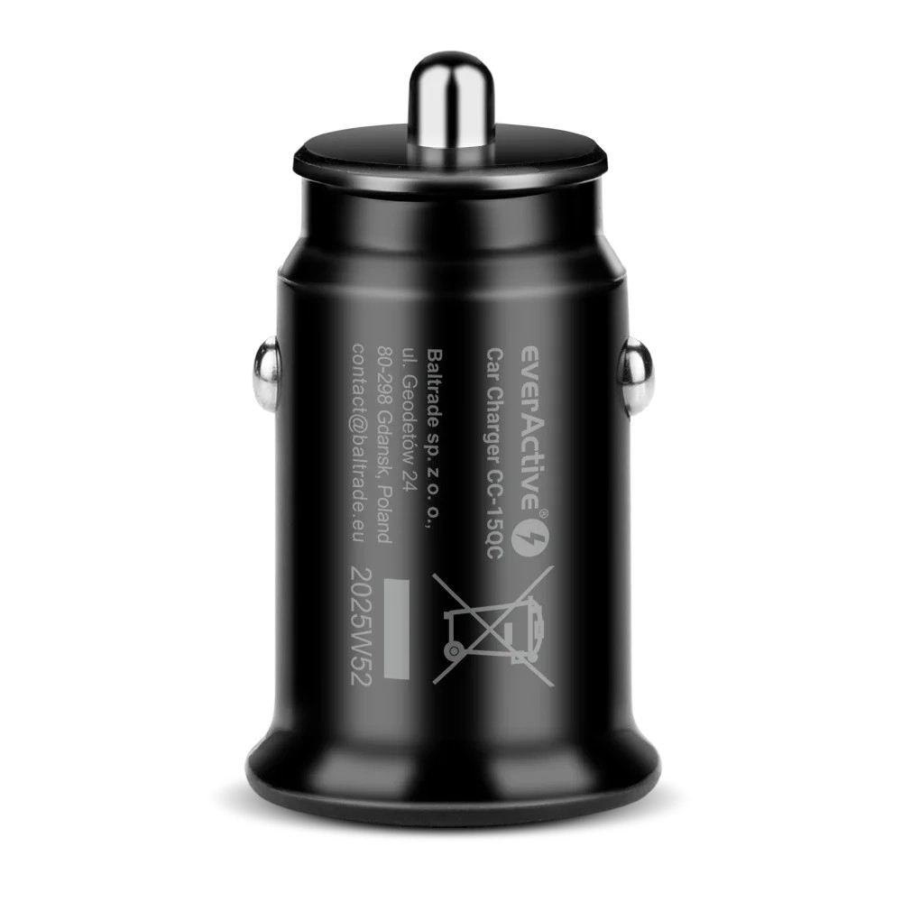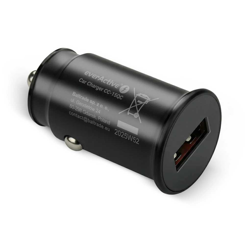 Užite si spoľahlivé nabíjanie na cestách. Autonabíjačka everActive pre 12/24 V zásuvky disponuje jedným portom USB‑A s Quick Charge 3.0 a dodá až 18 W výkonu na skrátenie času nabíjania. Robustné a kompaktné telo sa pohodlne vojde do zásuvky zapaľovača a neprekáža pri používaní.