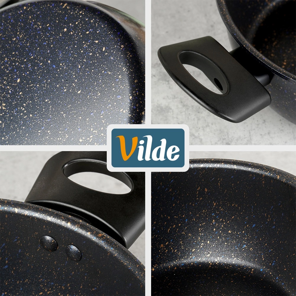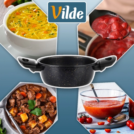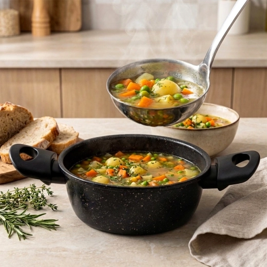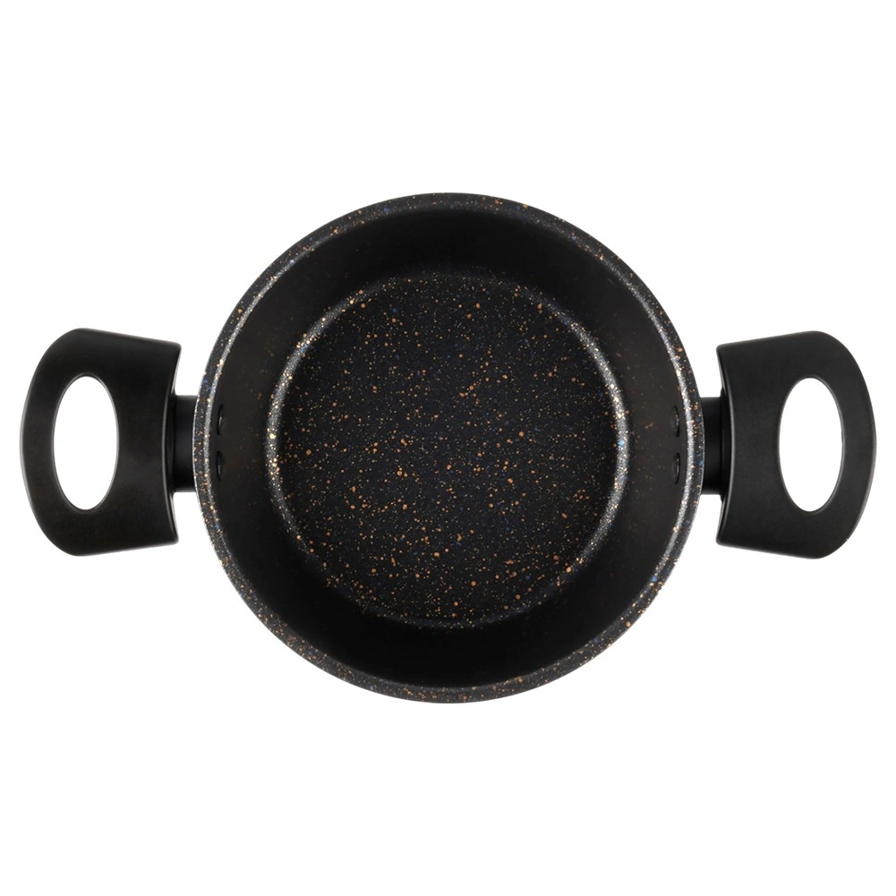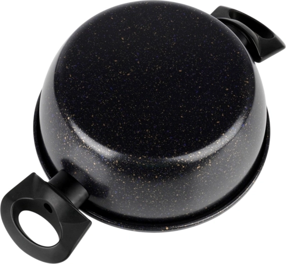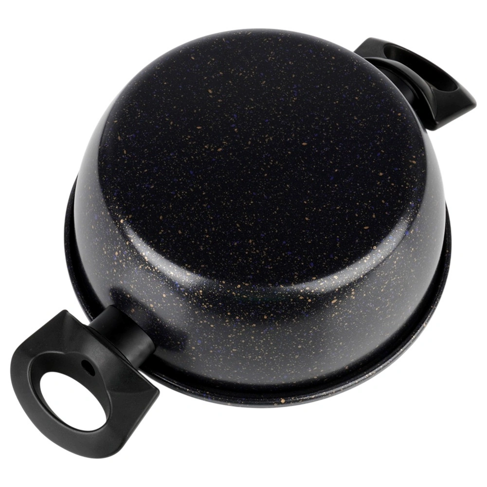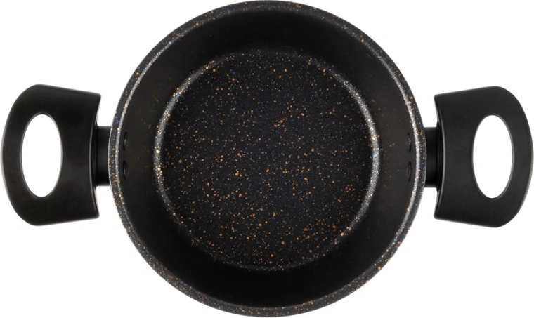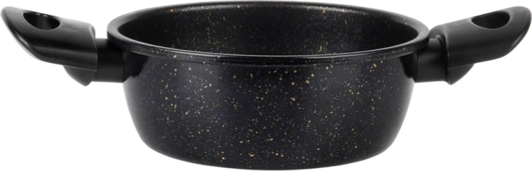 Praktický hrniec s nepriľnavou granitovou povrchovou úpravou uľahčí prípravu polievok, omáčok aj zeleniny. Telo zo silnej uhlíkovej ocele rovnomerne rozvádza teplo, povrch s kamenným efektom minimalizuje pripaľovanie a skracuje upratovanie. Ergonomické bočné rúčky z odolného plastu spríjemnia prenášanie z platne na stôl.