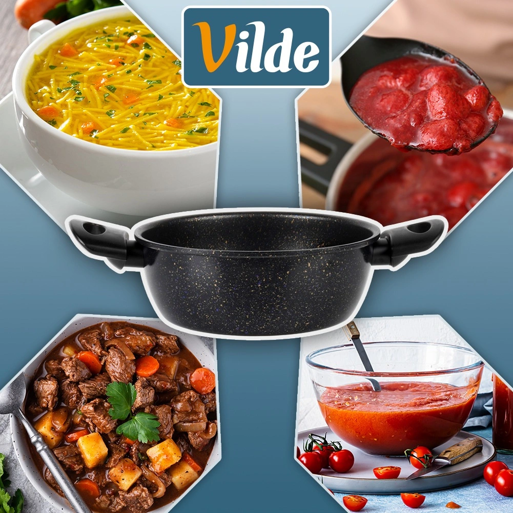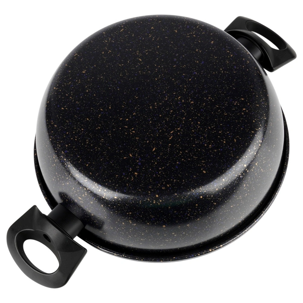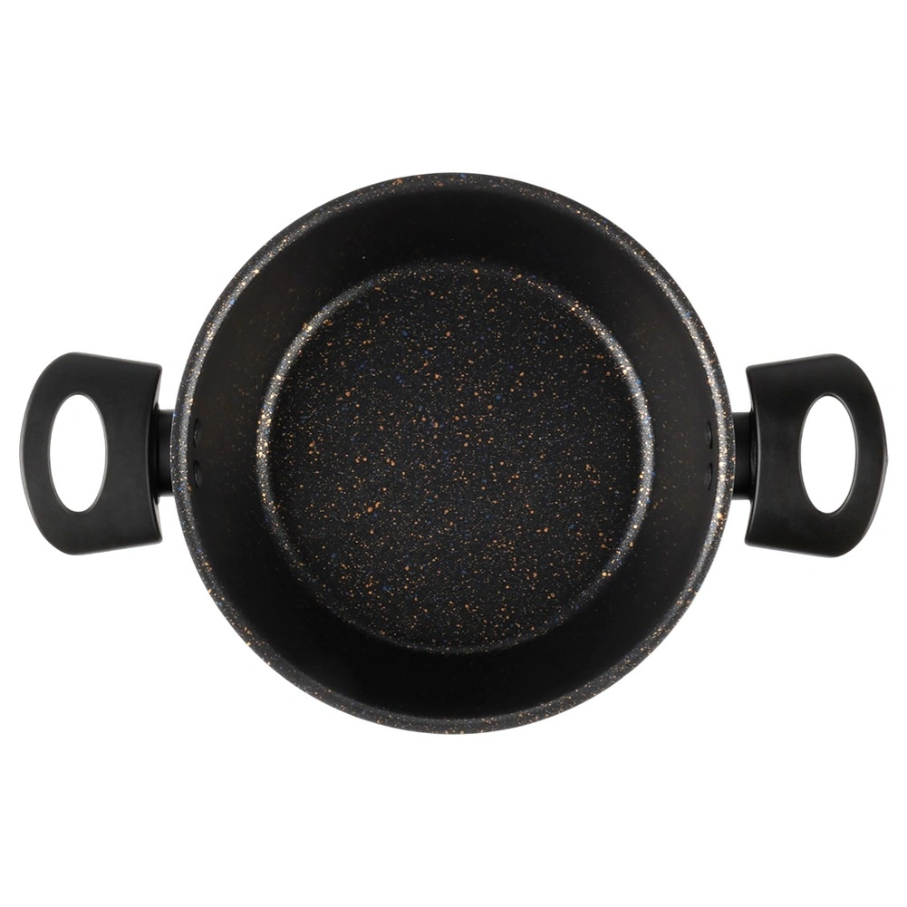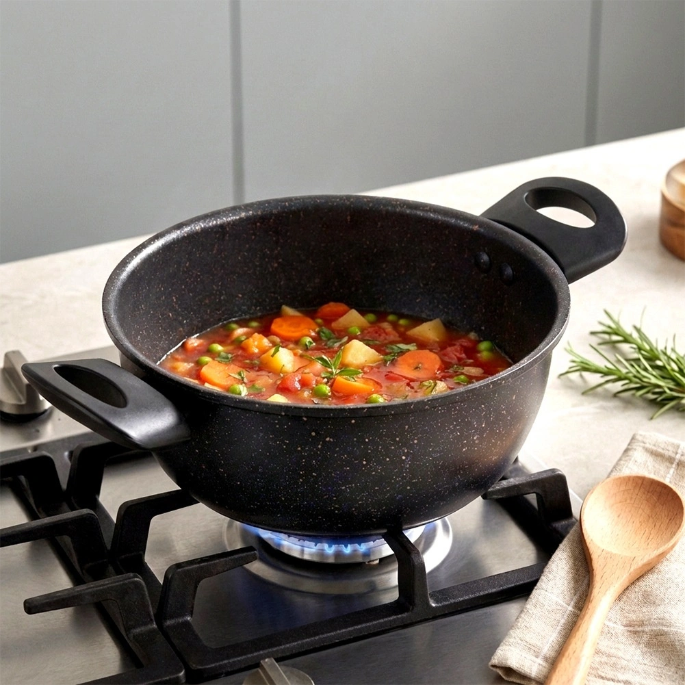 Praktický granitový hrniec s objemom 2 l a priemerom 20 cm s odolným nelepivým povrchom na varenie s minimom tuku. Ergonomické široké úchyty zaistia bezpečnú manipuláciu, hrniec je vhodný na plynové, elektrické a sklokeramické sporáky a možno ho umývať v umývačke (nie je určený na indukciu).