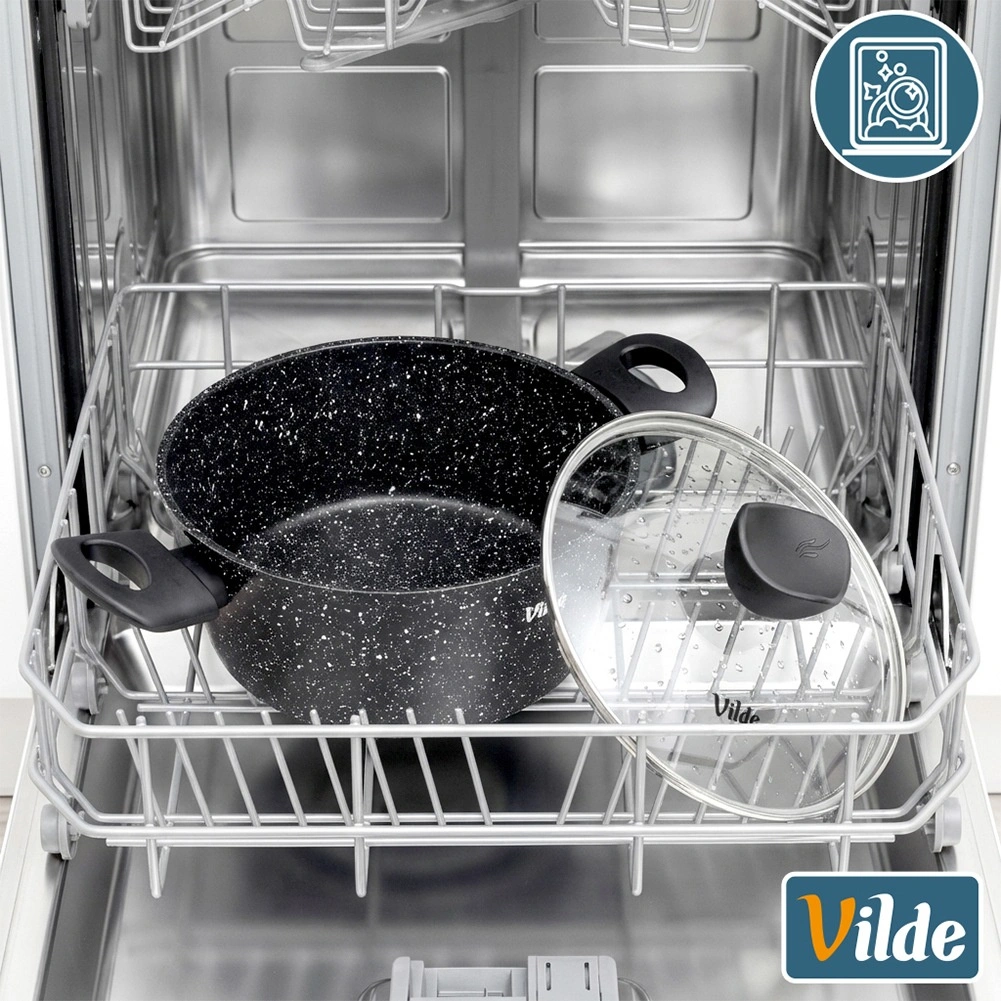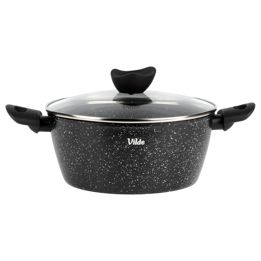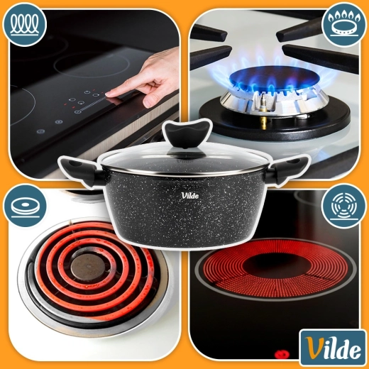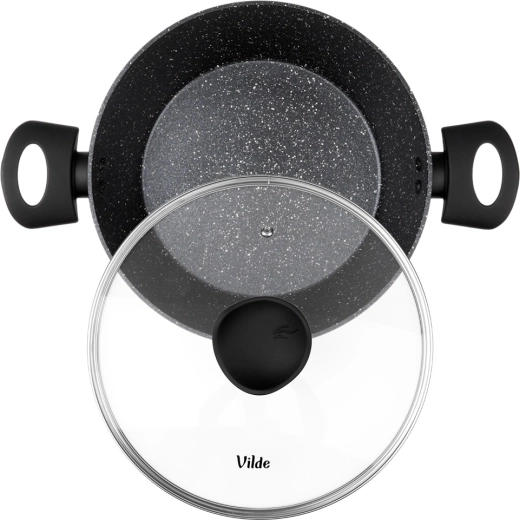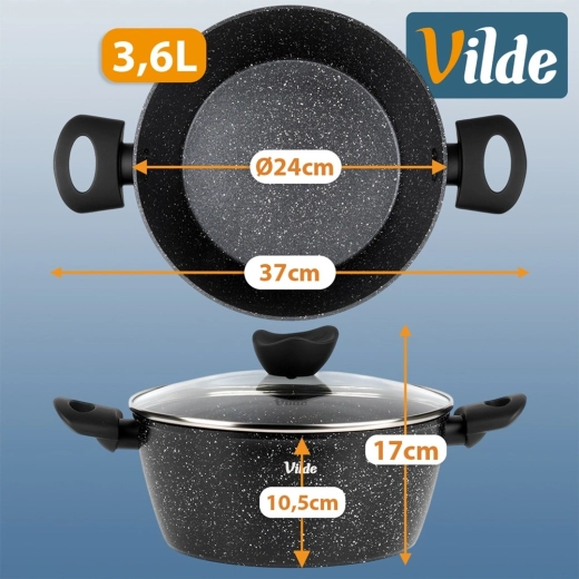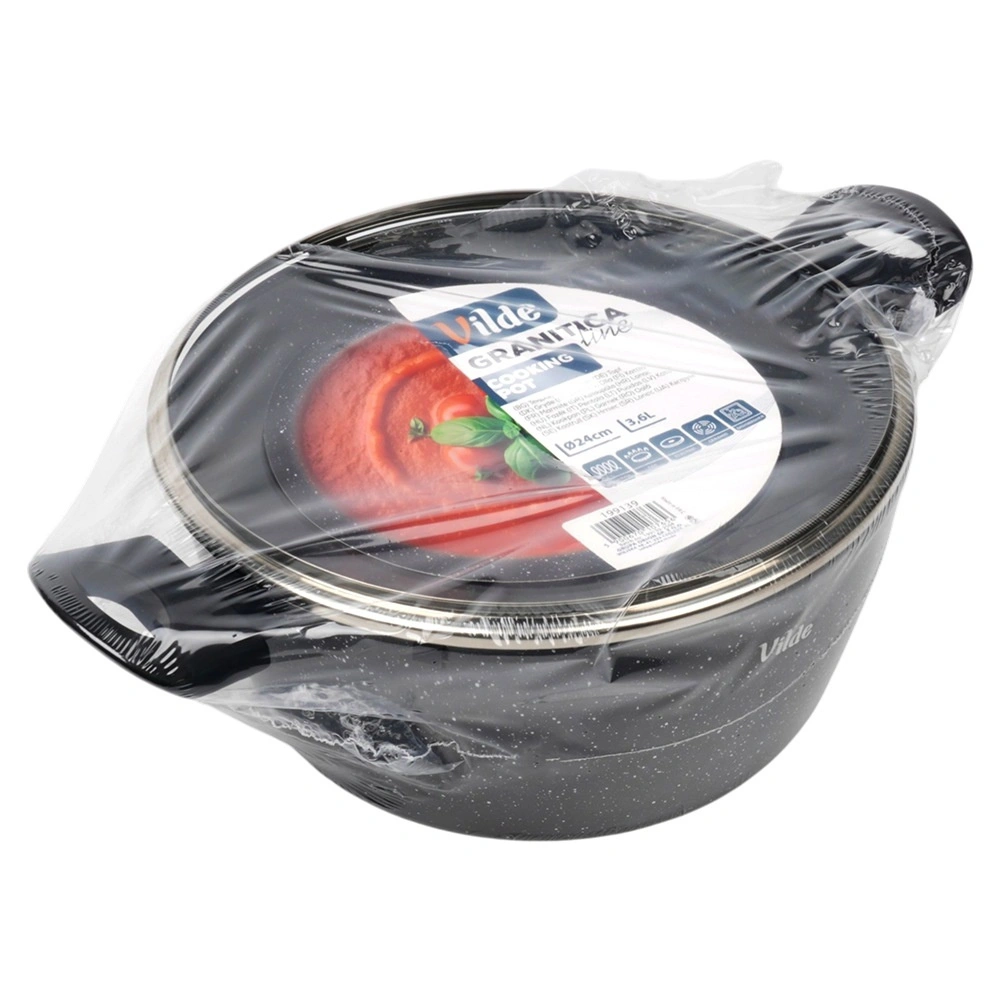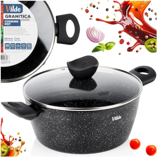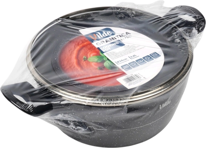 Praktický hrniec s objemom 3,6 l zo série VILDE GRANITICA kombinuje odolný hliníkový odliatok s nepriľnavým granitovým povrchom pre zdravé varenie s minimom tuku. Súčasťou je sklenená pokrievka s otvorom na únik pary a pohodlné Soft Touch rukoväte. Vhodný na indukciu, plyn, elektrinu aj keramiku a možno ho umývať v umývačke riadu.