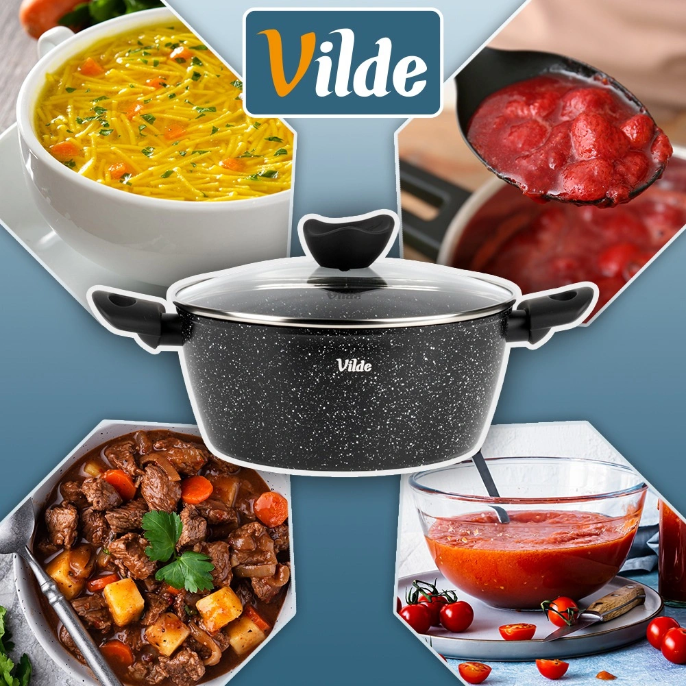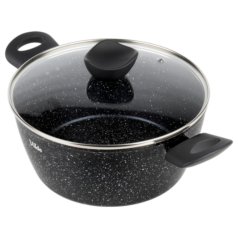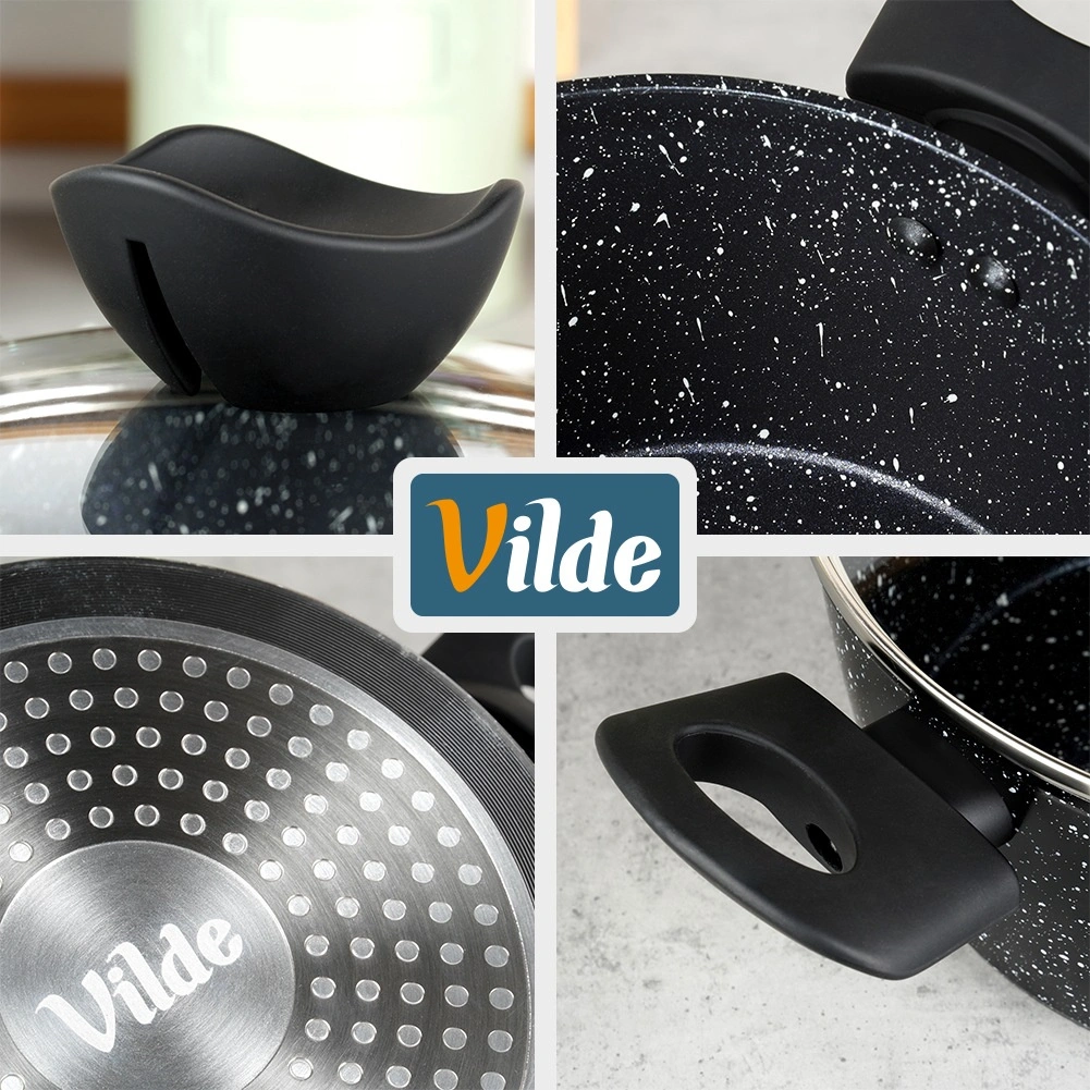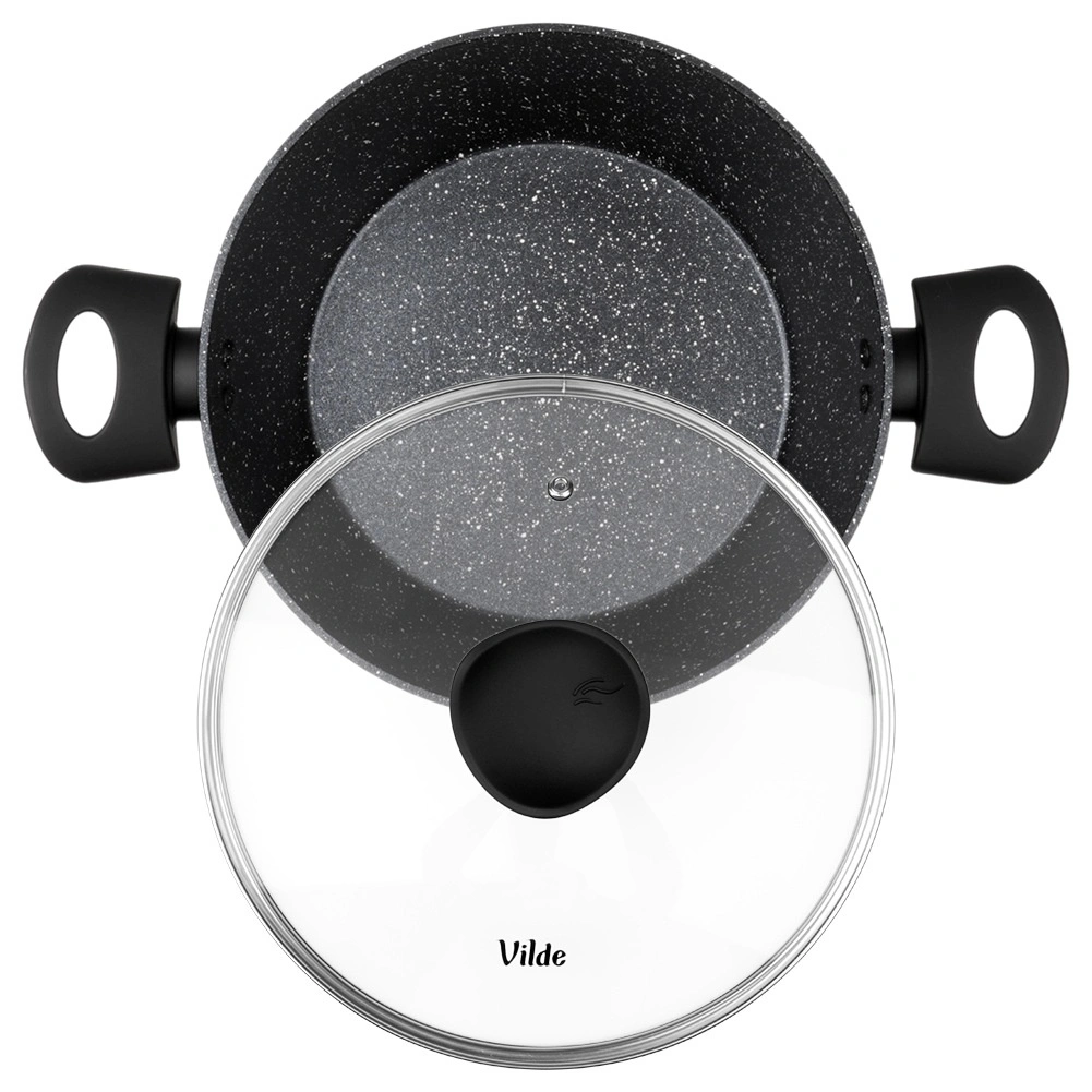 Praktický hrniec s objemom 3,6 l zo série VILDE GRANITICA kombinuje odolný hliníkový odliatok s nepriľnavým granitovým povrchom pre zdravé varenie s minimom tuku. Súčasťou je sklenená pokrievka s otvorom na únik pary a pohodlné Soft Touch rukoväte. Vhodný na indukciu, plyn, elektrinu aj keramiku a možno ho umývať v umývačke riadu.
