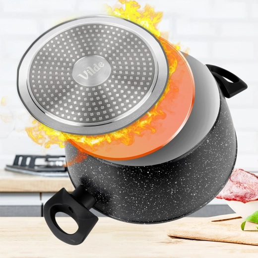 Viacvrstvé dno s indukčnou doskou zaistí efektívne a rovnomerné zahrievanie na všetkých typoch sporákov vrátane indukcie.