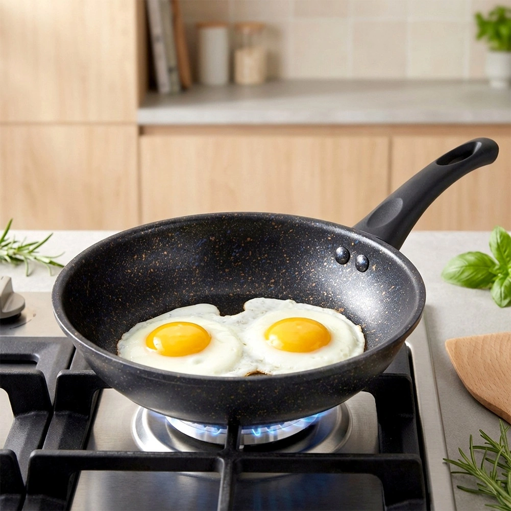 Telo z uhlíkovej ocele zabezpečuje efektívny rozvod tepla pre rýchle výsledky bez horúcich miest. Skvelé na vyprážanie vajec, zeleniny aj mäsa.