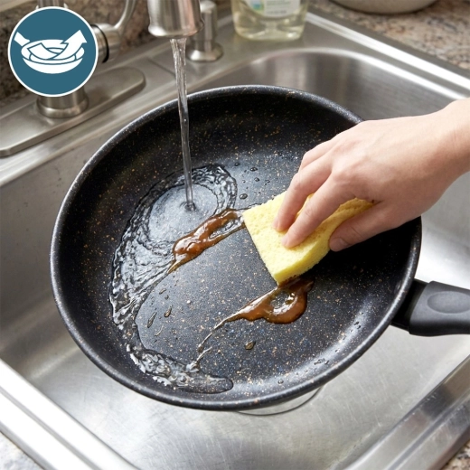 Špeciálny povrch s granitovým efektom zabraňuje pripaľovaniu a umožňuje variť s minimom oleja. Jedlo sa ľahko uvoľňuje a panvica sa rýchlo čistí.