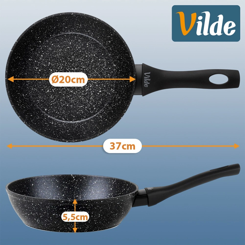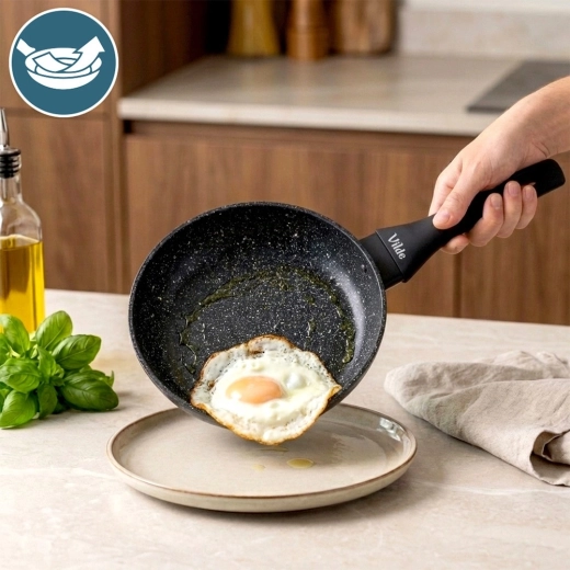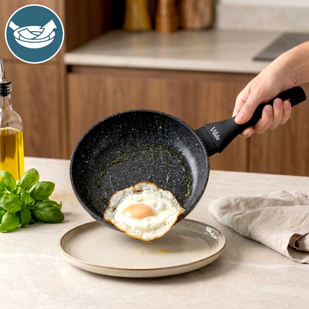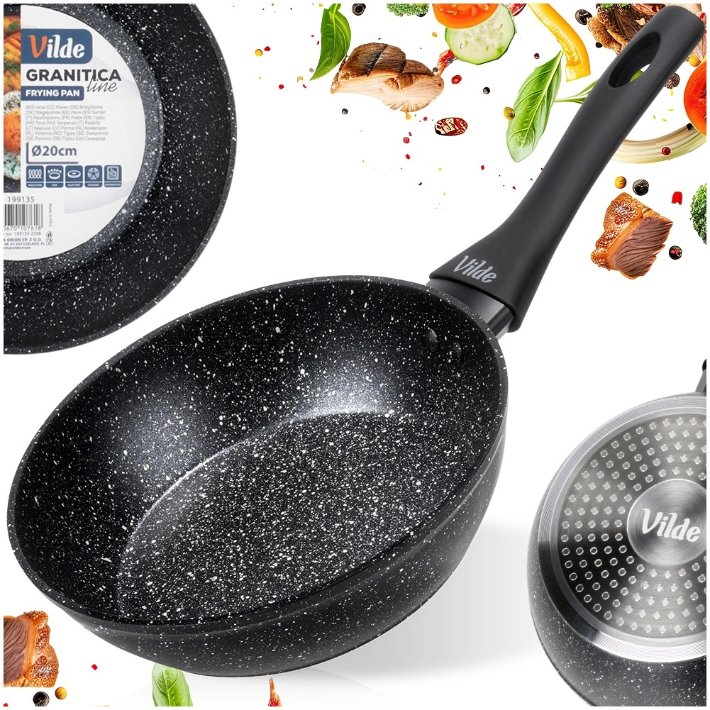Štýlová a odolná panvica z línie Granitica je vyrobená z hliníkového odliatku s nepriľnavou žulovou (granitovou) povrchovou úpravou, ktorá umožňuje variť s minimom tuku a uľahčuje čistenie. Vďaka kompaktným rozmerom 20 cm je ideálna na vajíčka, zeleninu, menšie porcie mäsa aj rýchle ohrievanie.
