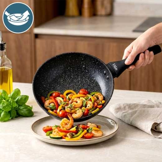 Univerzálna granitová panvica s priemerom 24 cm na každodenné varenie. Vďaka neprilnavej granitovej povrchovej úprave pripravíte jedlá s minimom tuku, rýchlo a rovnomerne. Ergonomická rukoväť soft touch skvele padne do ruky a je príjemná na dotyk. Panvica je vhodná na všetky typy sporákov vrátane indukcie a možno ju umývať v umývačke.