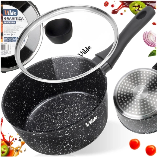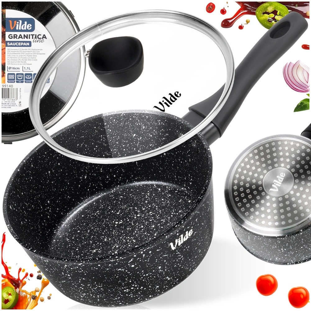 Univerzálna rajnica 16 cm je perfektná na omáčky, ohrievanie mlieka, rozpúšťanie masla, restovanie cibule aj varenie vajec. Telo z tlakovo liateho hliníka s nepriľnavou granitovou vrstvou zabezpečuje rovnomernú distribúciu tepla a jednoduché čistenie. Sklenená pokrievka s nerezovým lemom a parným ventilom umožní mať varenie neustále pod kontrolou.