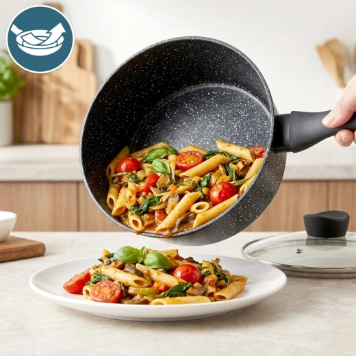 Viacvrstvová granitová úprava minimalizuje prichytávanie a umožňuje variť s menším množstvom tuku. Čistenie je rýchle a bez námahy.