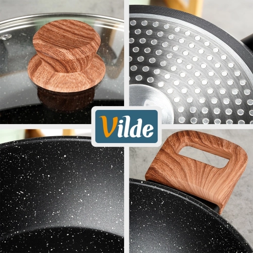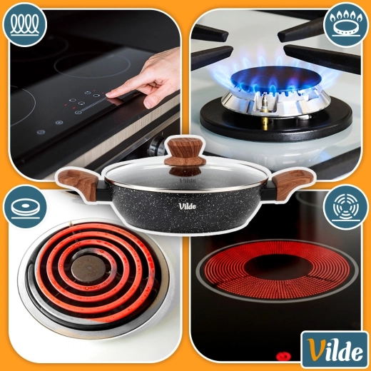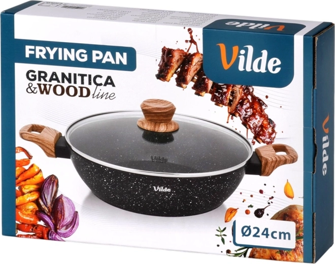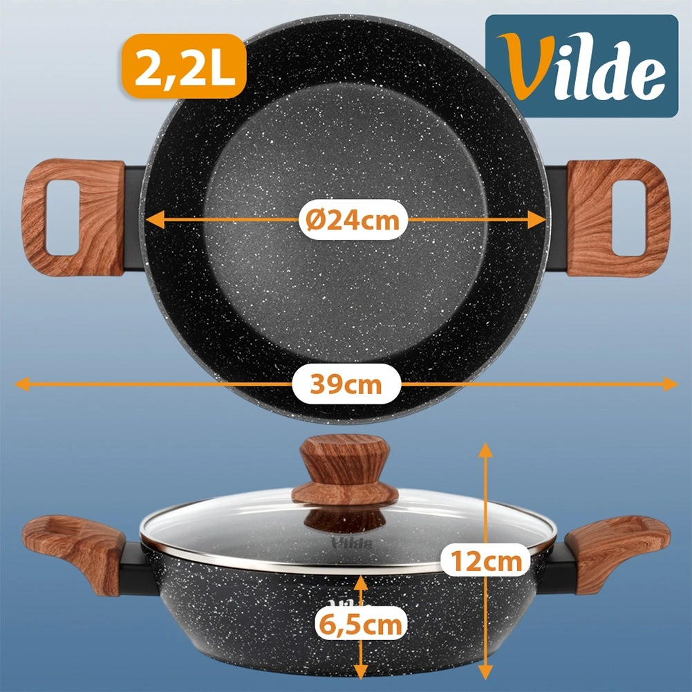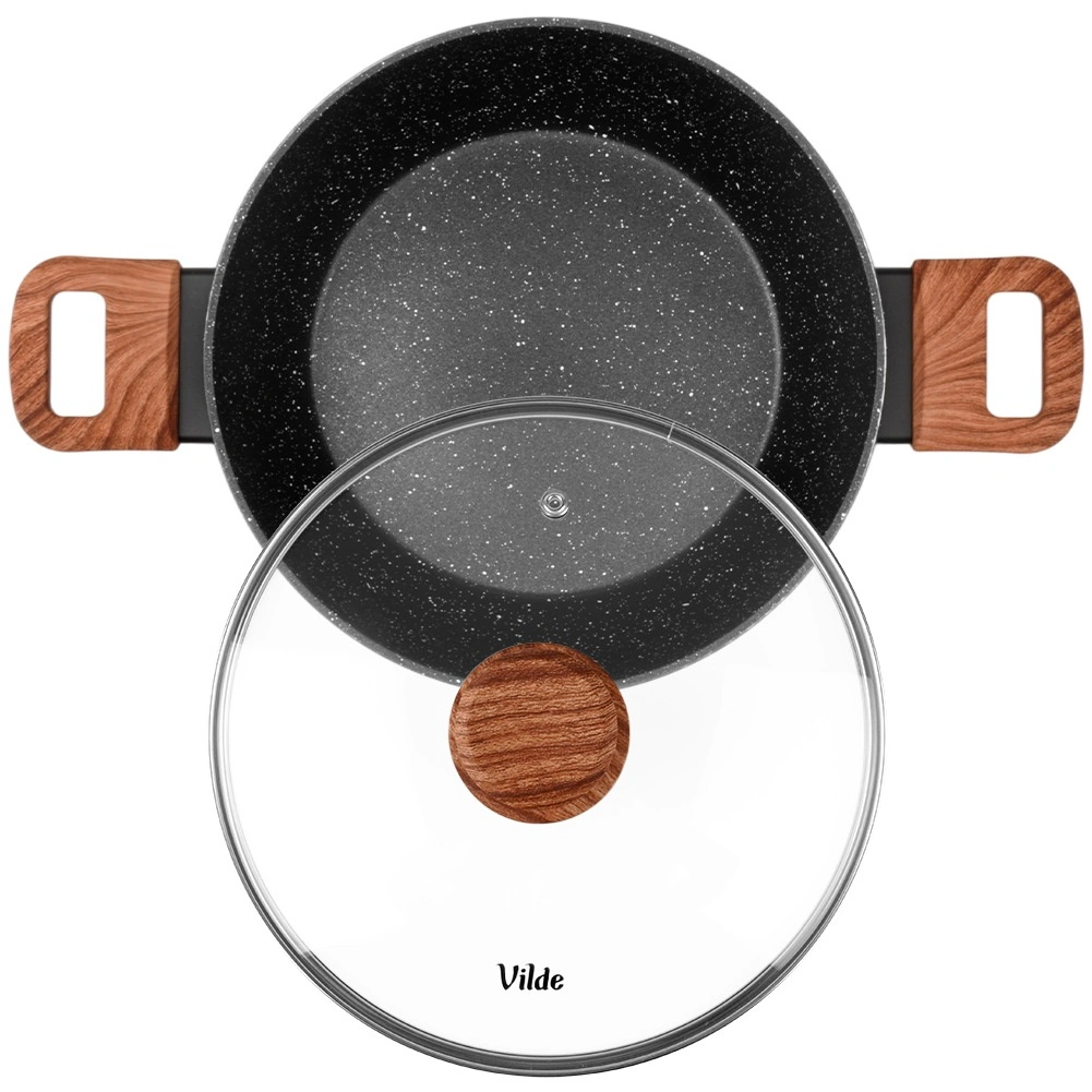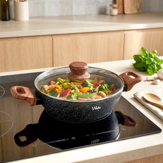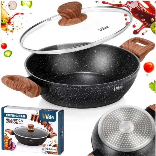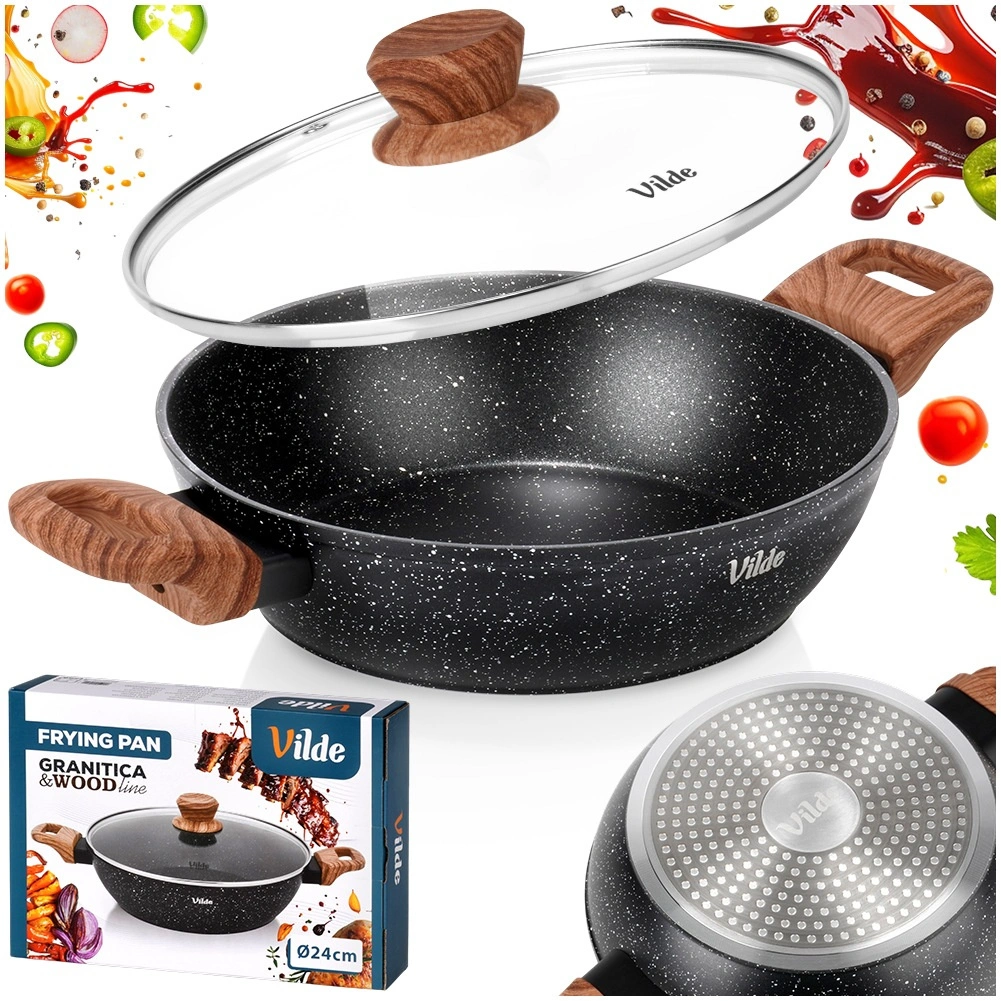 Praktická hlboká panvica s objemom 2,2 l so sklenenou pokrievkou na každodenné varenie. Vďaka nepriľnavej žulovej povrchovej úprave, rovnomernému rozvodu tepla a soft touch rukovätiam v dekore dreva ľahko pripravíte vyprážané, dusené aj zapekané jedlá s minimom tuku. Pokrievka z žiaruvzdorného skla s parným ventilom umožňuje pohodlnú kontrolu varenia. Vhodná na indukciu, plyn, elektrinu aj keramiku a je možné ju umývať v umývačke riadu.