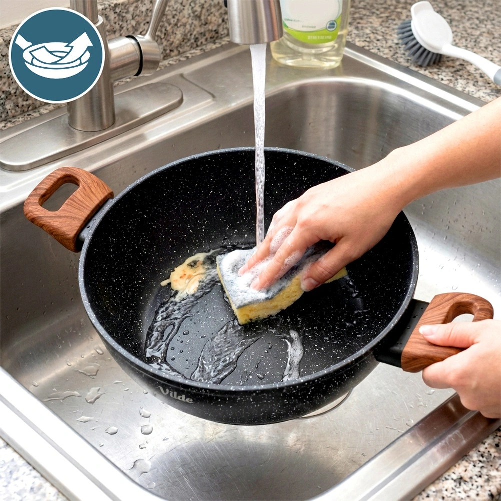 Odolná žulová povrchová úprava zabezpečuje rovnomerné rozohriatie a ľahké uvoľnenie pokrmov bez pripaľovania. Ideálne na zdravšie varenie aj rýchle čistenie.
