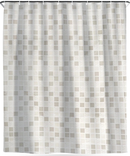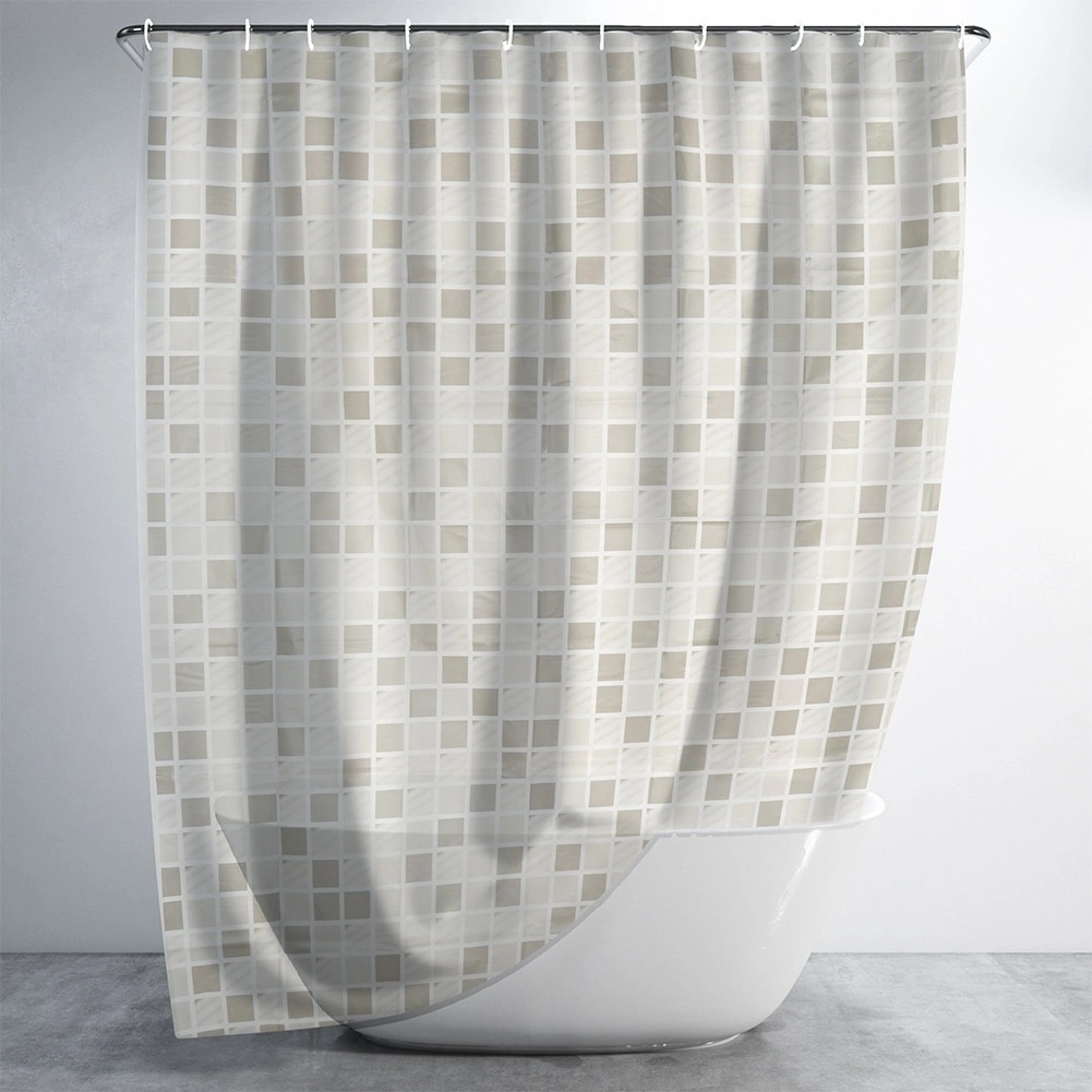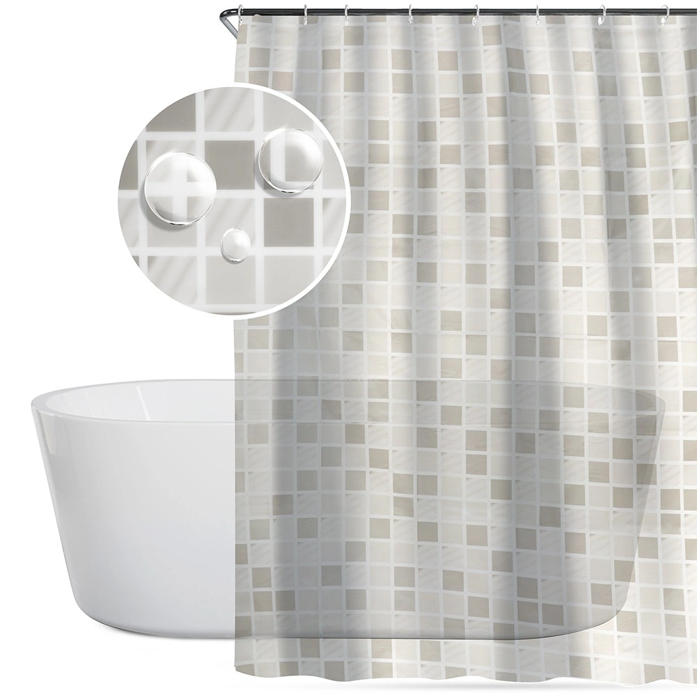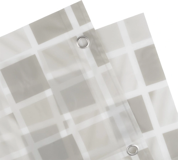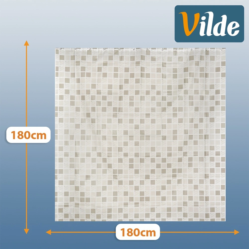 Štýlový sprchový záves s rozmermi 180 × 180 cm s jemným mozaikovým vzorom zaistí súkromie a spoľahlivú ochranu proti striekajúcej vode. Vyrobený z ekologického materiálu PEVA, ktorý je bez škodlivých látok, ľahko sa čistí a súčasťou balenia je 12 háčikov na rýchlu montáž.