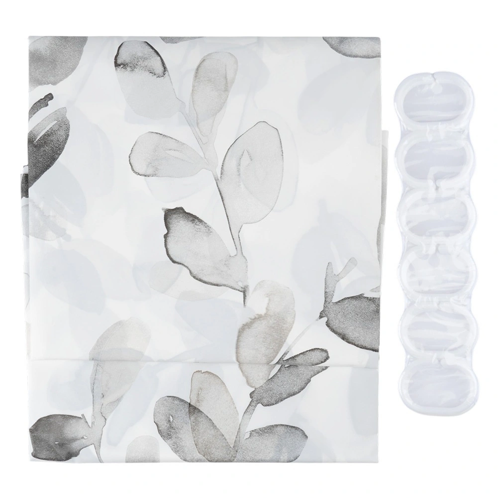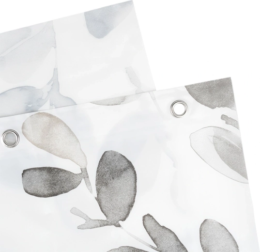 Vneste do kúpeľne pokojnú, prírodnú atmosféru. Biely záves so sivo‑šedými listami spája moderný dizajn a praktickú ochranu proti vode. Vďaka materiálu PEVA je vodoodolný, ľahko umývateľný a šetrný k životnému prostrediu.